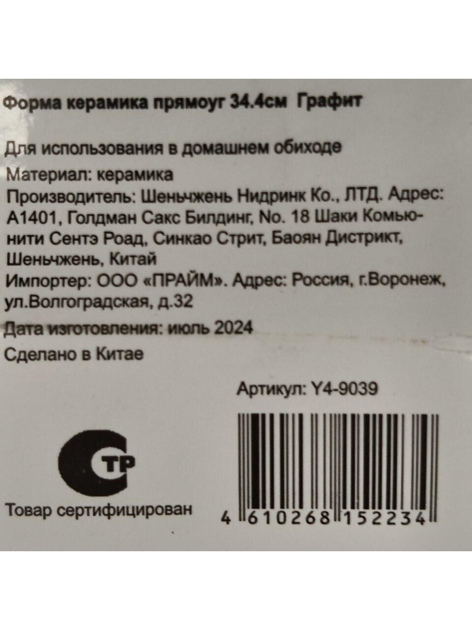Вы можете приобрести «Форма для запекания керамика, 23.5х34.4х7 см, 2 л, прямоугольная, Графит, Y4-9039» и другие товары в нашем интернет-магазине в Тамбове по низким ценам и с бесплатным самовывозом.