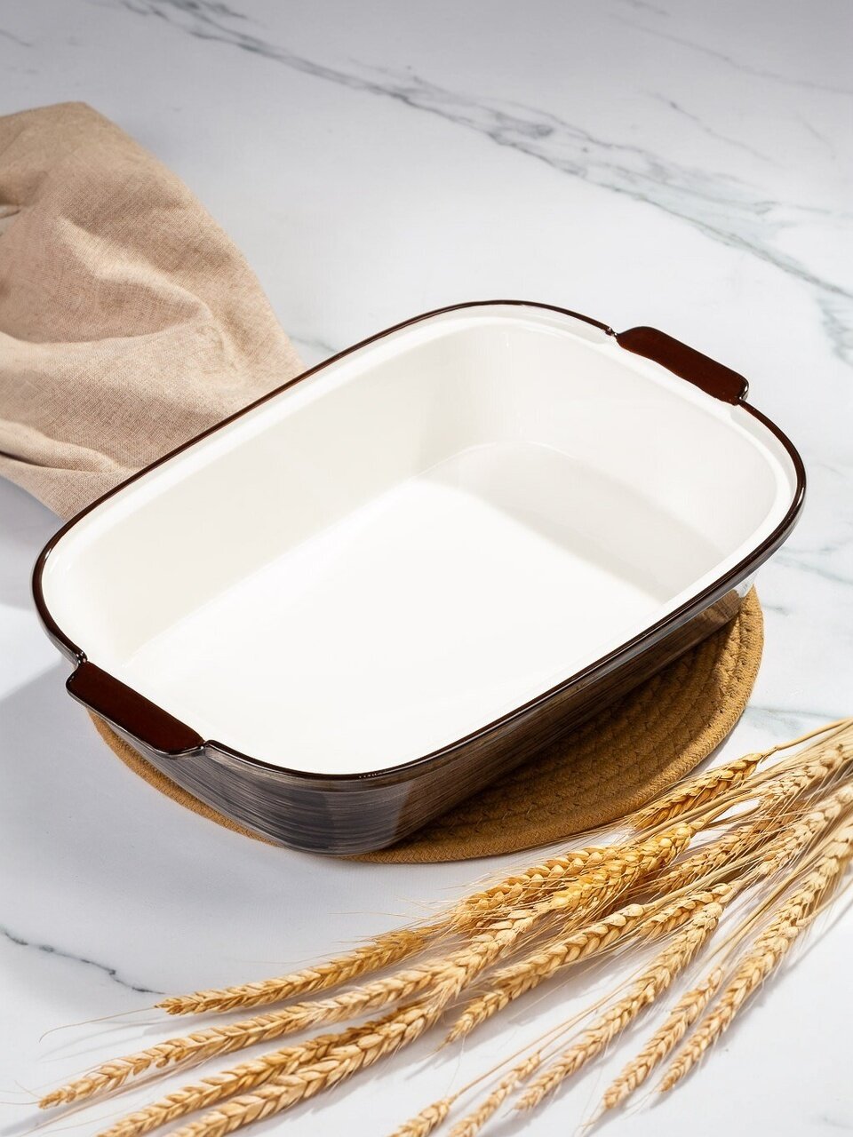 Чем отличается керамическая форма от стеклянной или металлической? Керамика обеспечивает мягкое, равномерное пропекание, не пересушивает продукты и сохраняет сочность. Прямоугольная форма оптимальна для запекания курицы, рыбы, овощей и выпечки. Как использовать форму для запекания без риска? Просто поместите её в разогретую духовку или СВЧ — керамика выдерживает высокие температуры и не деформируется со временем.
