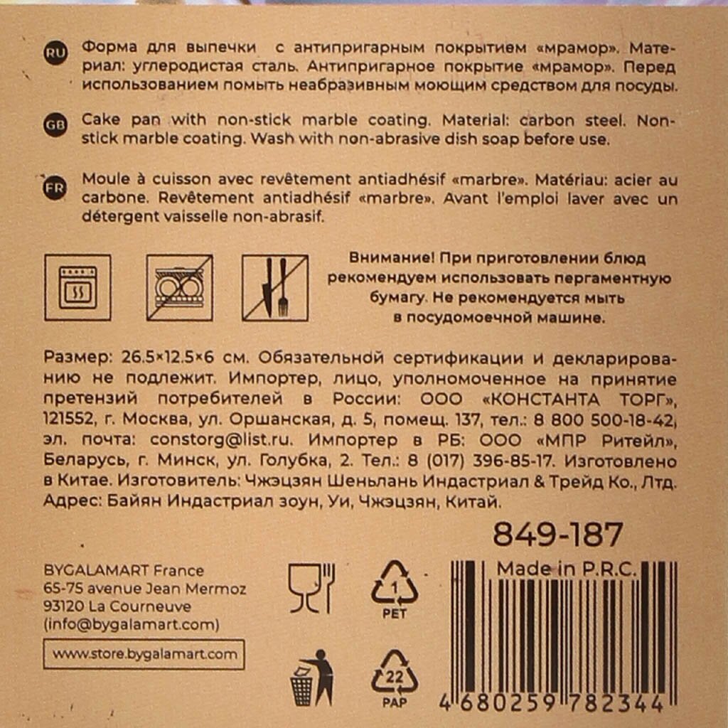 Вы можете приобрести «Форма для запекания углеродистая сталь, 12.5х26.5х6 см, антипригарное покрытие, прямоугольная, мрамор, Satoshi, Буко, 849-187» и другие товары в нашем интернет-магазине в Краснодаре по низким ценам и с бесплатным самовывозом.