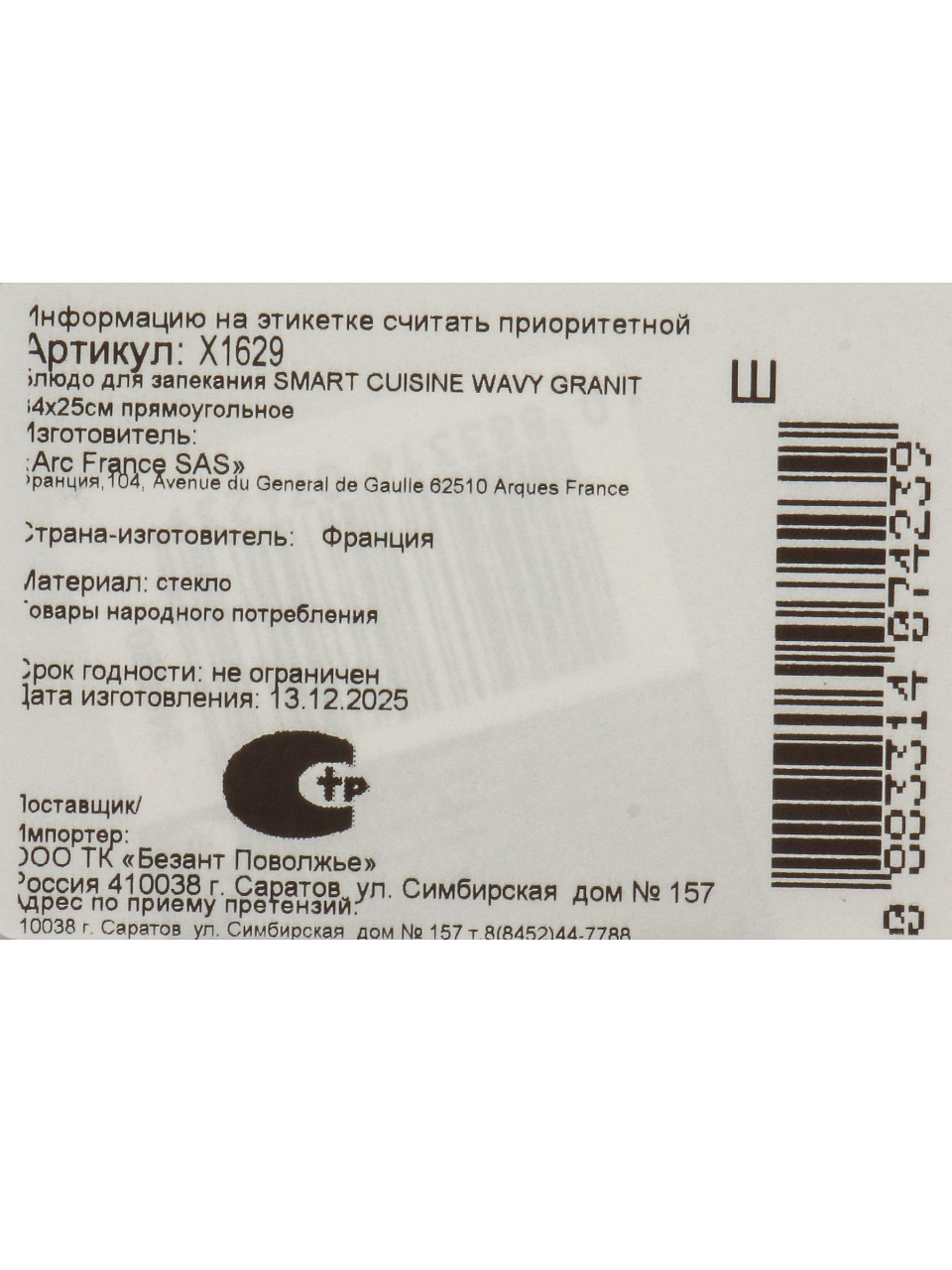 Вы можете приобрести «Форма для запекания стеклокерамика, 25х34 см, прямоугольная, Luminarc, Smart Cuisine Wavy Granit, X1629» и другие товары в нашем интернет-магазине в Таганроге по низким ценам и с бесплатным самовывозом.