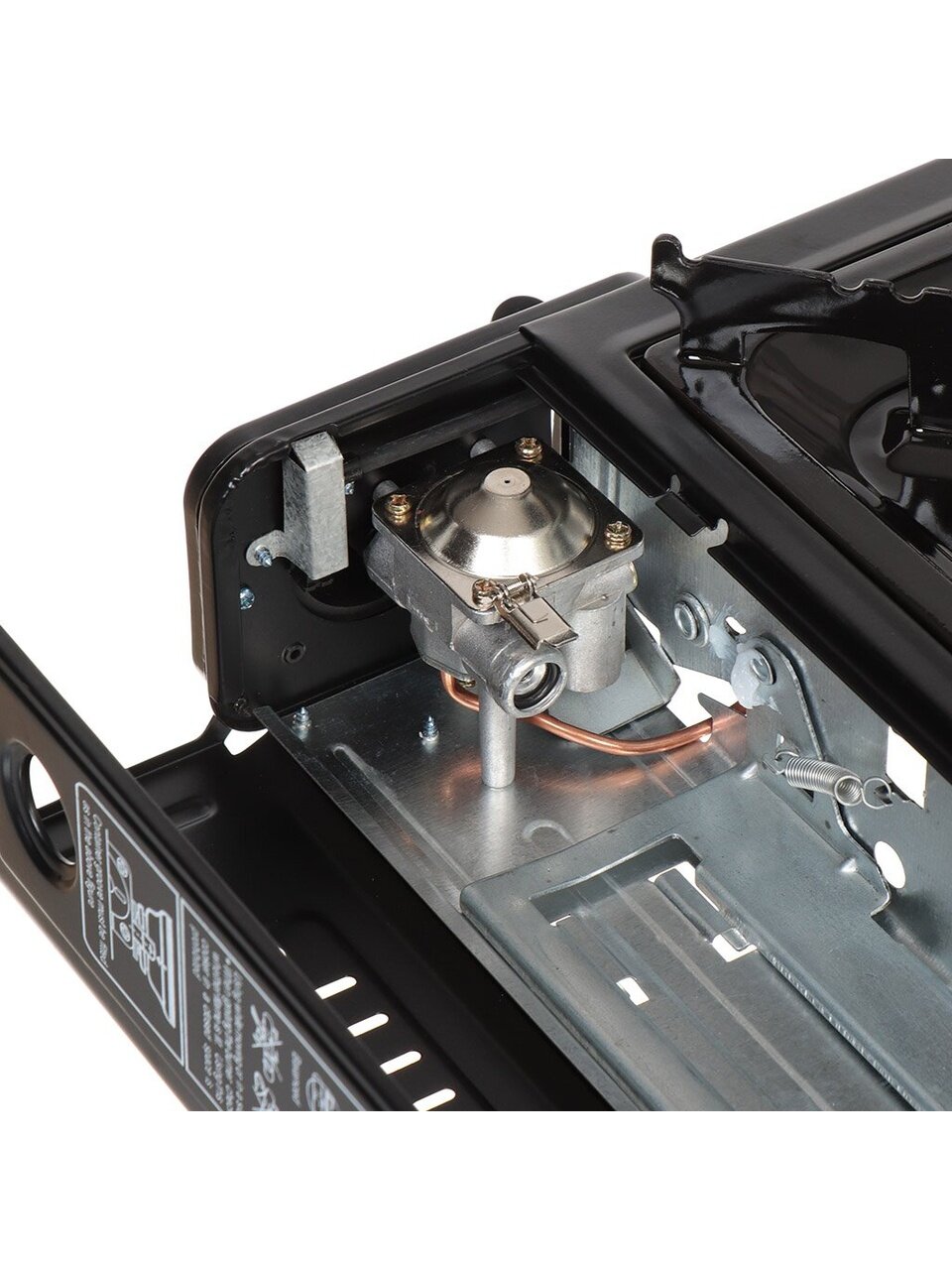 Плита газовая портативная предназначена для приготовления пищи на пикнике, в походе, на даче, в дальней дороге или просто во время отдыха на природе. Портативная плита очень легка и удобна в использовании. Работает от одного одноразового цангового баллона. Рабочая поверхность плиты изготовлена из стали, покрытой огнеупорной эмалью, что увеличивает срок службы изделия. Транспортировка и переноска плиты осуществляется в удобном пластиковом кейсе. Максимальная нагрузка на плиту до 10 кг.