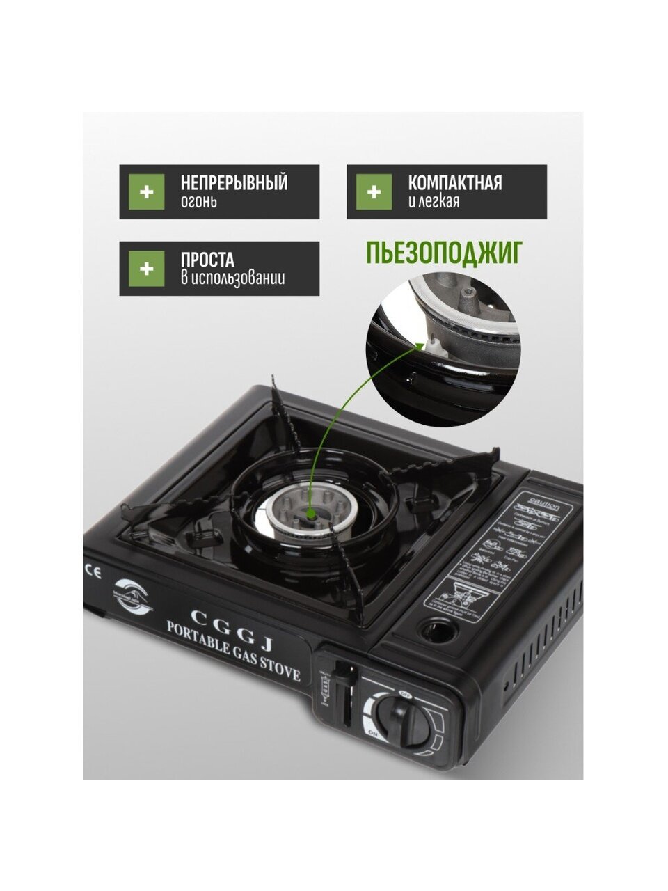 - Подключение баллона: работает от одноразового газового цангового баллона (не подключается к большим баллонам).