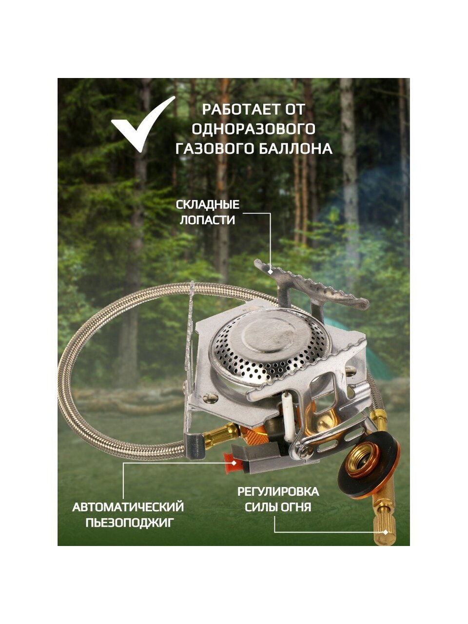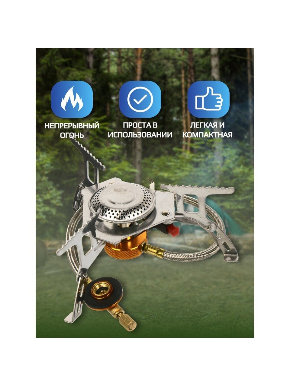 Портативная газовая плита предназначена для приготовления пищи на пикнике, на даче или в походе. Очень легкая и удобная. Работает от одноразового цангового газового баллона.