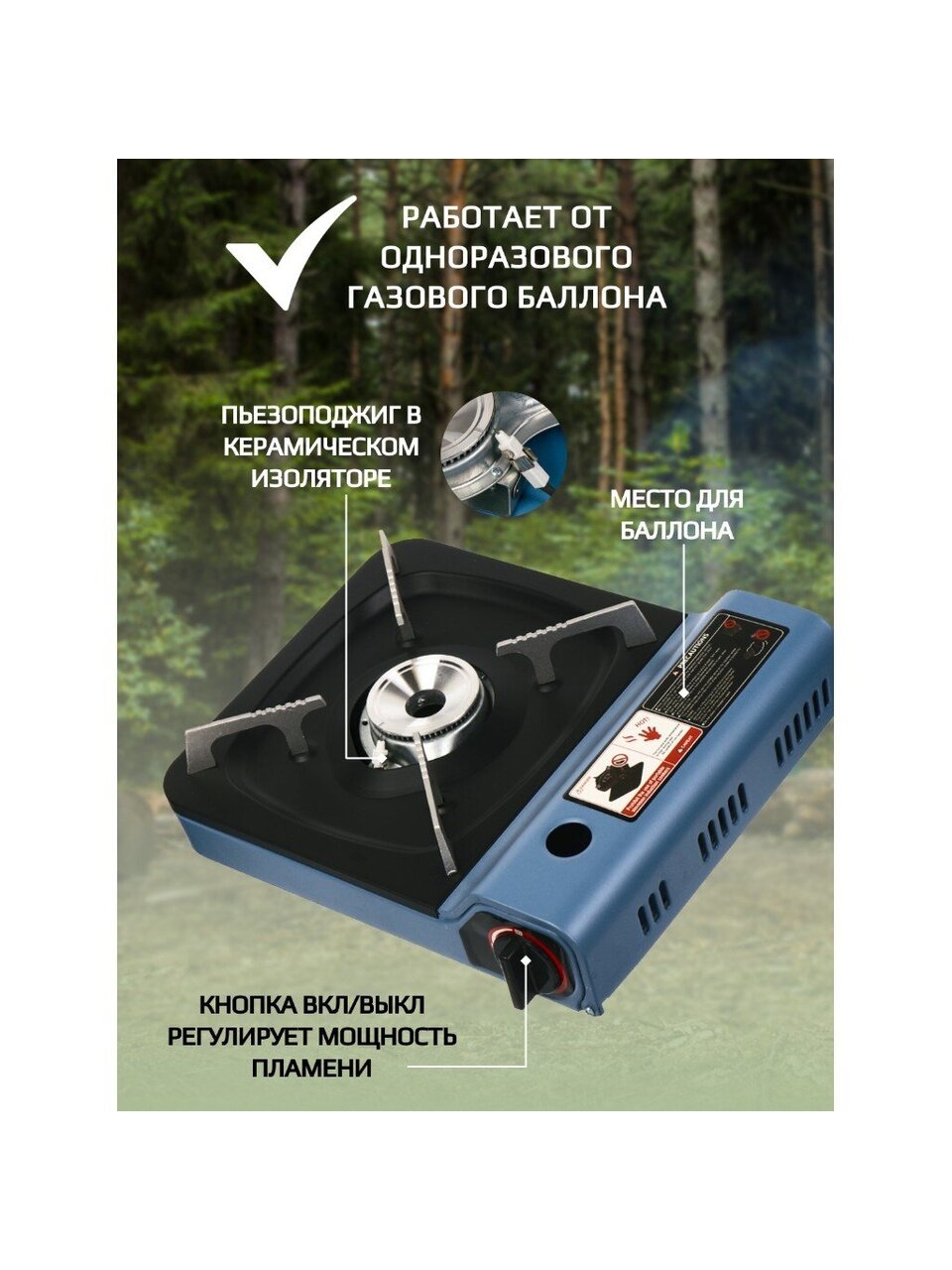 Портативная газовая плита предназначена для приготовления пищи на пикнике, на даче или в походе. Очень легкая и удобная. Работает от одноразового цангового газового баллона.