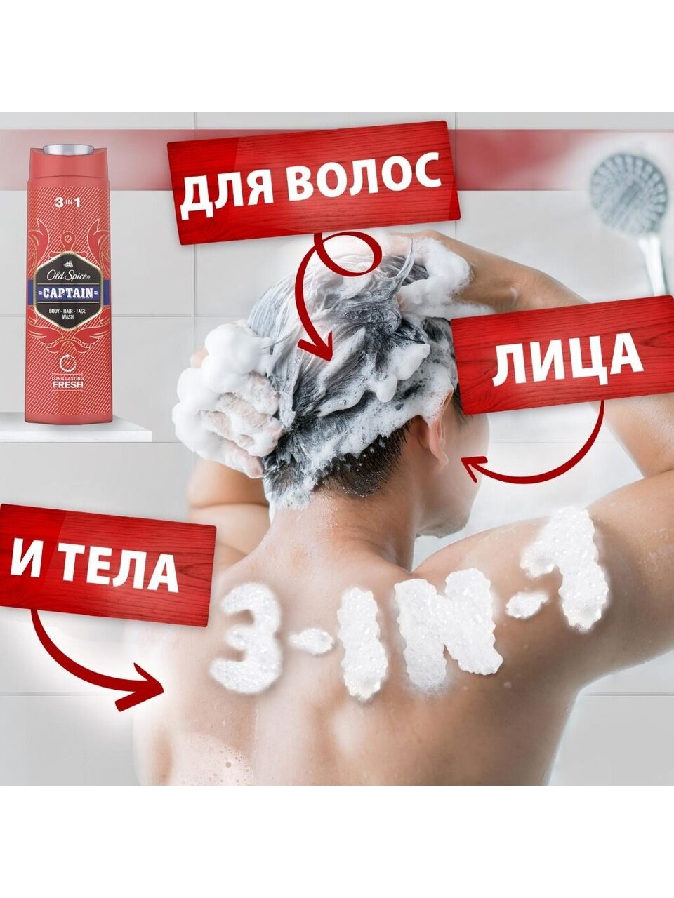 Мужской гель для душа Old Spice очищает кожу и с легкостью вышибает неприятный запах. Вспень небольшое количество средства (лучше делать это в душе) и вымой им тело. Даже когда ты не покоряешь открытые моря, ты покоряешь помещения, наполняя их свежим ароматом сандалового дерева и открытого океана. Мужской гель для душа Old Spice берет на себя борьбу с грязью и неприятным запахом, чтобы ты мог выполнять более важные задачи - заключать сделки или учить дельфинов разговаривать, например. Благодаря незабываемому аромату Old Spice вы всегда будете в центре внимания. Формула 3-в-1, ведь гель для душа Old Spice создан для настоящих мужчин. Станьте сильнее. Гель для душа Old Spice. Сила. Все хотят ей обладать. Освежающая пена смывает грязь и устраняет неприятный запах.