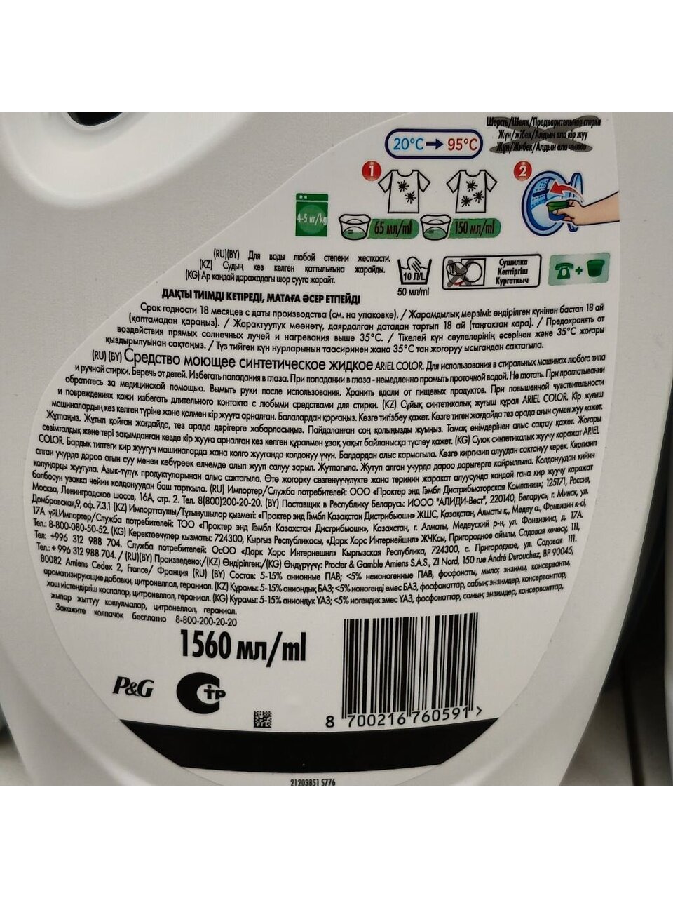 Гель для стирки Ariel, 1.560 л, для цветного белья, Color