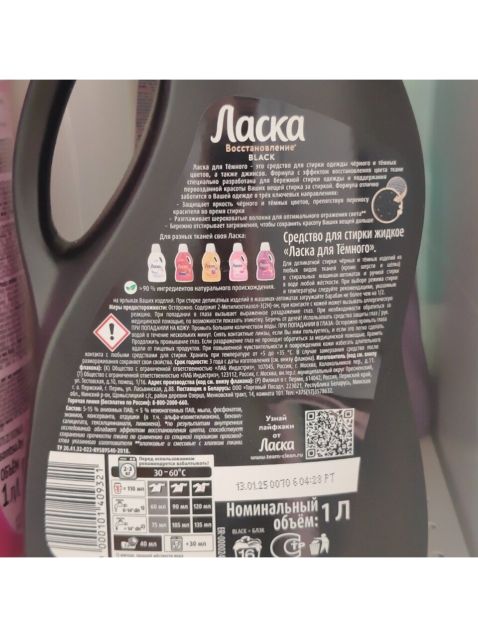 Жидкий порошок Ласка Восстановление BLACK для тёмного эффективно и бережно отстирывает загрязнения на одежде, восстанавливая яркость чёрного и тёмных цветов и сохраняя прочность волокон ткани. В отличие от обычного порошка, Ласка содержит цветозащитные ингредиенты, которые поддерживают стойкость цвета одежды. Активные компоненты способствуют уменьшению количества катышков на ткани. Формула содержит более 90% ингредиентов натурального происхождения.