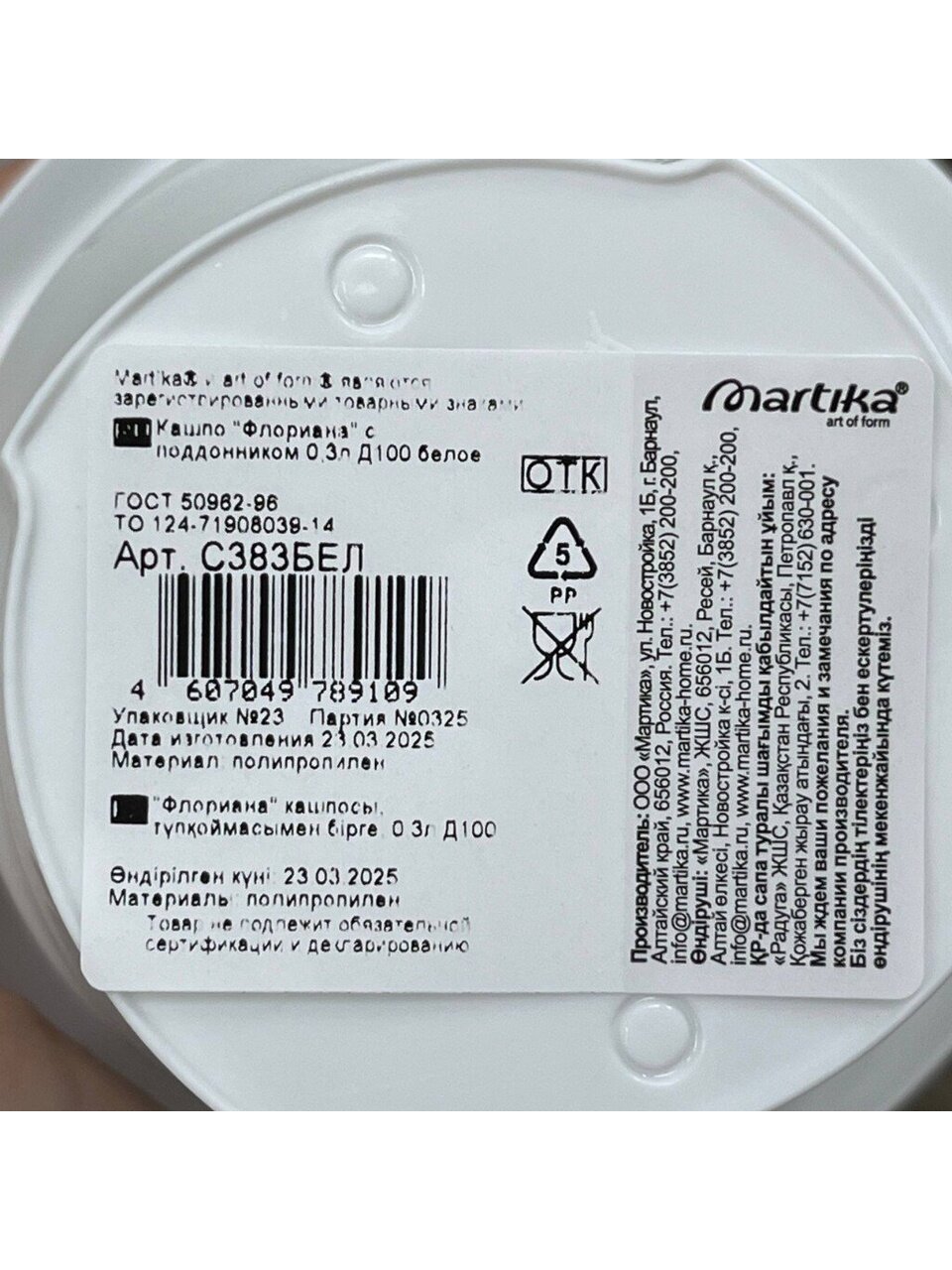 Вы можете приобрести «Горшок для цветов пластик, 0.3 л, 10х7.6 см, белый, Martika, Флориана, С383БЕЛ» и другие товары в нашем интернет-магазине в Ярославле по низким ценам и с бесплатным самовывозом.