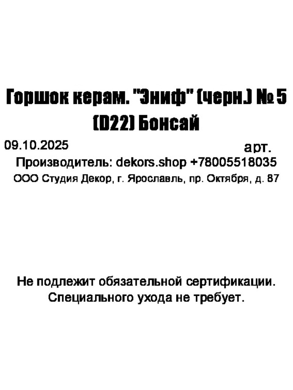 Вы можете приобрести «Горшок керамика, 2 л, 22х8 см, бонсай, черный, Эниф №5, 630061» и другие товары в нашем интернет-магазине в Ставрополе по низким ценам и с бесплатным самовывозом.
