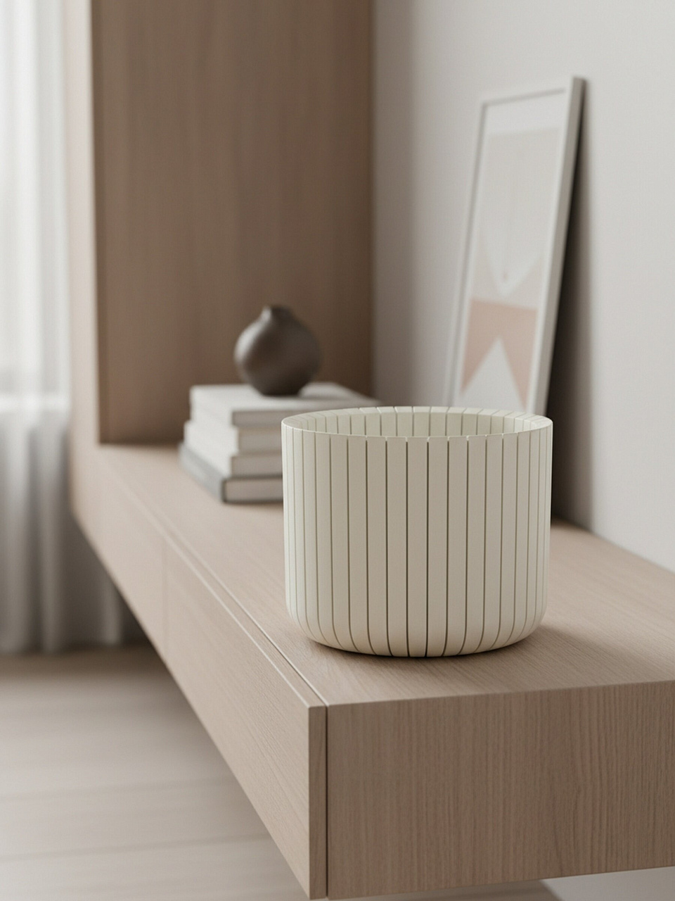 Изделие имеет цилиндрическую форму. Поверхность с имитацией дощечек и фактуры древесины, приятна на ощупь, отличается долговечностью и простотой в уходе. Кашпо Шато- привлекательная деталь, которая поможет воплотить Вашу интерьерную идею, создать неповторимую атмосферу в доме. Такое дополнение порадует глаз и подарит гармонию. Кашпо выглядит аккуратным компактным, не смотря на свою вместительность. Эффект объемных дощечек создается за счет декоративного ободка, при этом объем кашпо не уменьшается. Ободок также выполняет функцию ребра жесткости, что сохраняет прочность конструкции. Рекомендуемый размер вставки на 4-5 см уже размеров кашпо.