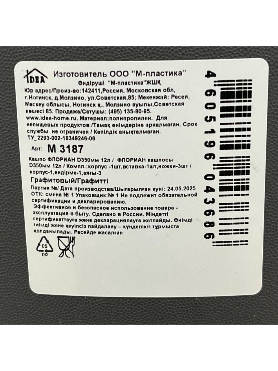 Вы можете приобрести «Кашпо пластик, 12 л, 35х25.5 см, графит, Idea, Флориан, М 3187» и другие товары в нашем интернет-магазине в Тамбове по низким ценам и с бесплатным самовывозом.