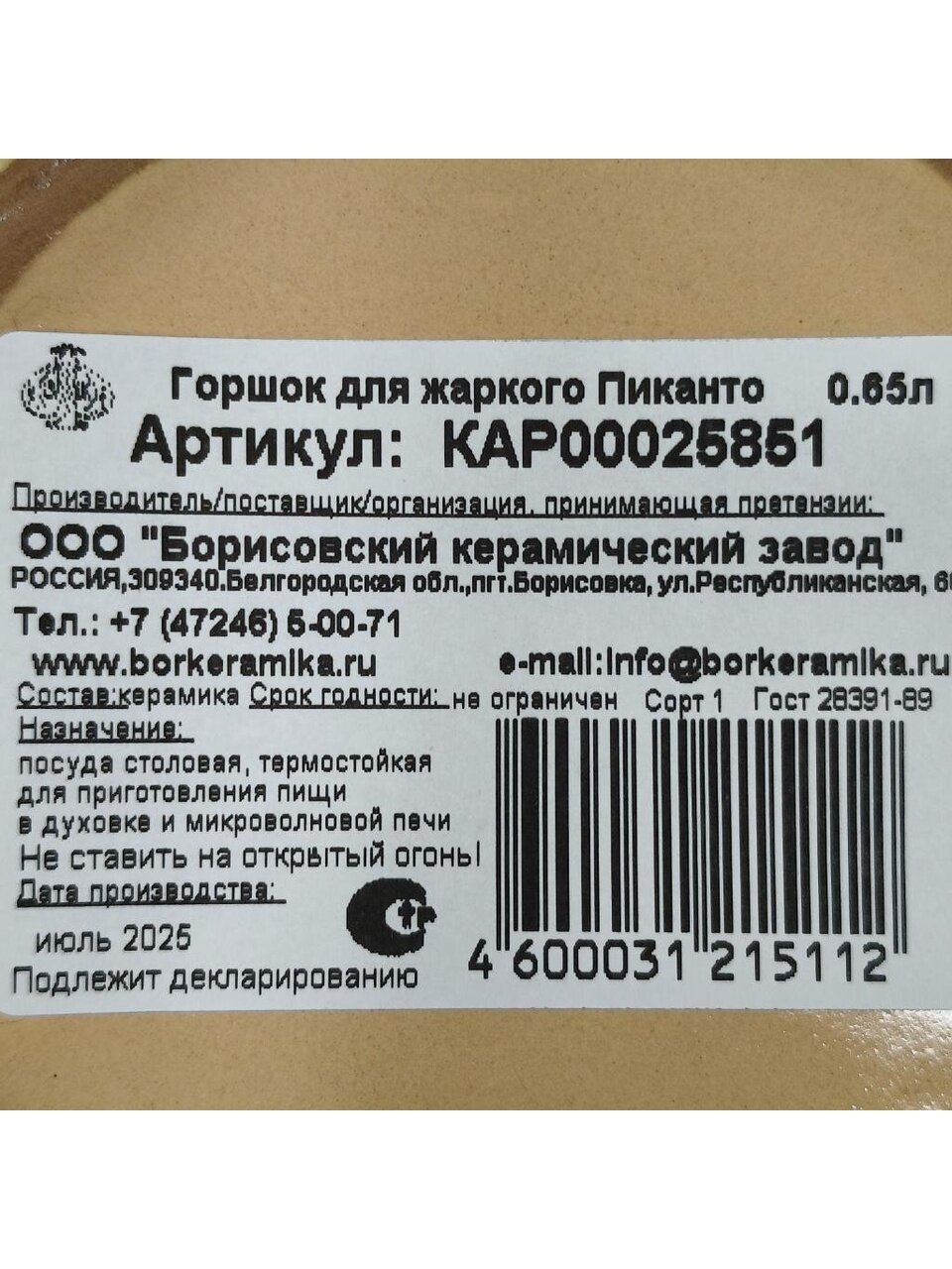 Вы можете приобрести «Горшок для жаркого керамика, 0.65 л, Борисовская керамика, Пиканто Каракум, КАР00025851» и другие товары в нашем интернет-магазине в Твери по низким ценам и с бесплатным самовывозом.