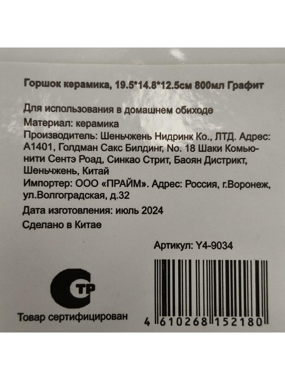 Вы можете приобрести «Горшок керамика, 0.8 л, Графит, Y4-9034» и другие товары в нашем интернет-магазине в Курске по низким ценам и с бесплатным самовывозом.