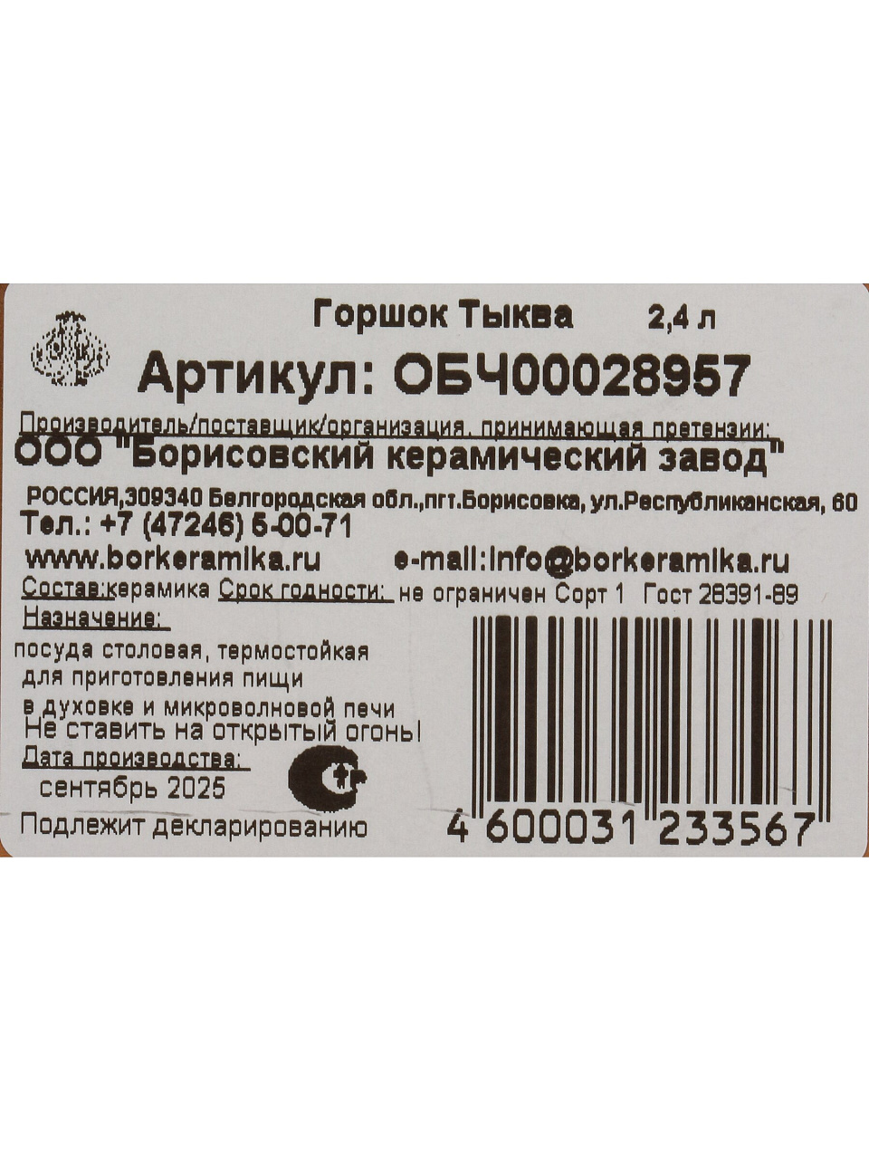 Вы можете приобрести «Горшок для жаркого керамика, 2.4 л, Борисовская керамика, Тыква, ОБЧ00028957» и другие товары в нашем интернет-магазине в Старом Осколе по низким ценам и с бесплатным самовывозом.
