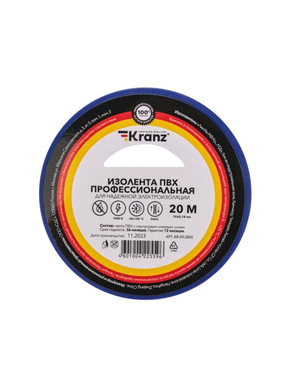 Профессиональная изолента ПВХ Kranz — надежный помощник для электромонтажных работ. Ширина 19 мм и плотность 180 мкм обеспечивают надежную изоляцию проводов. Синий цвет делает ее заметной и стильной. Длина 20 метров позволяет использовать ее для различных задач.
