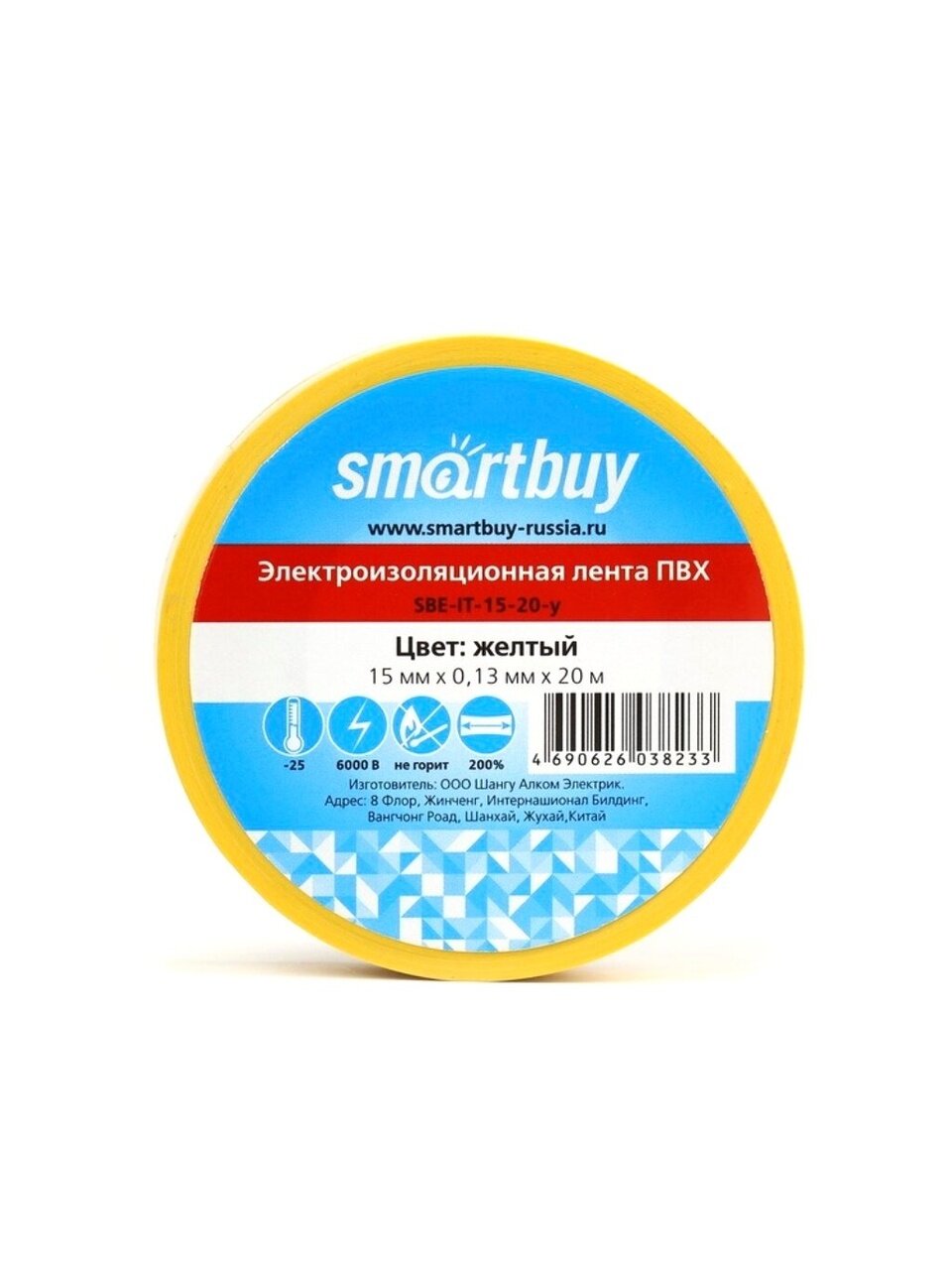 Изолента Smartbuy 0.13х15 мм, 20 метров, желтая SBE-IT-15-20-y отличается высокой гибкостью и адгезией. Изделие позволяет проводить разметку проводов, их электроизоляцию или ремонт.