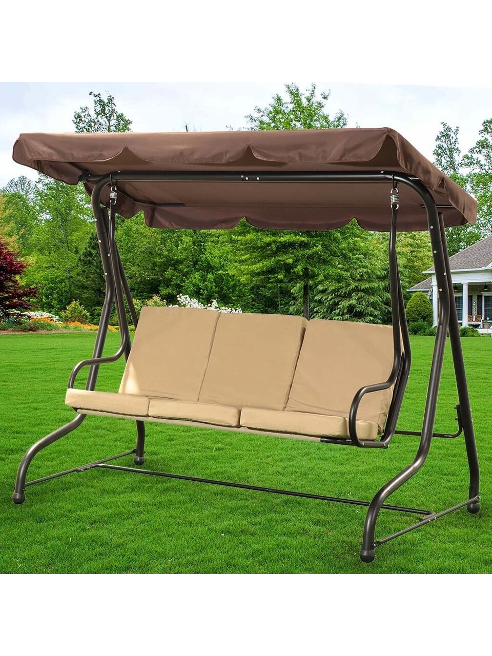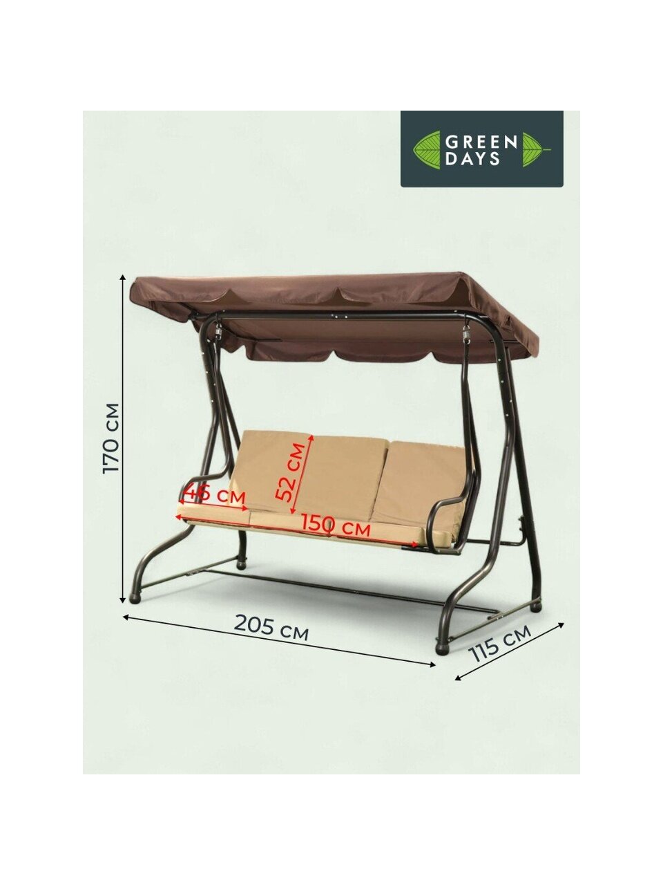 Вы можете приобрести «Качели садовые 3-местные, 195х120х170 см, 200 кг, Green Days, бежевые, YT8050, коричневая крыша, металл» и другие товары в нашем интернет-магазине в Курске по низким ценам и с бесплатным самовывозом.