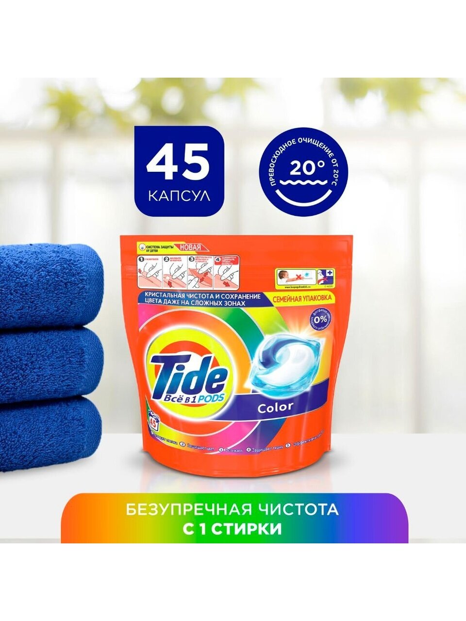 Вы можете приобрести «Капсулы для стирки Tide, Все в 1 Pods Color, 45 шт, капсула 16.8 г» и другие товары в нашем интернет-магазине в Таганроге по низким ценам и с бесплатным самовывозом.