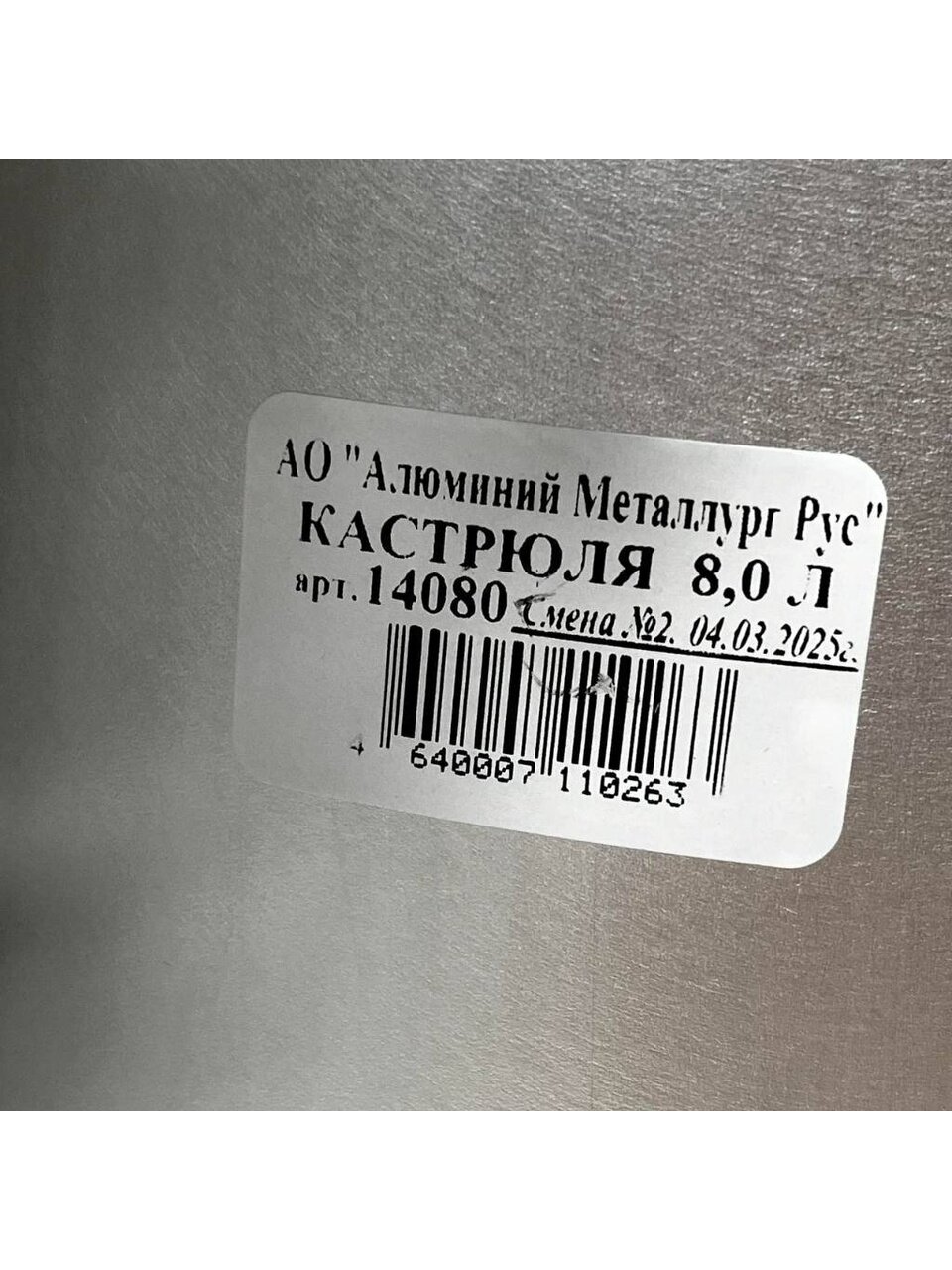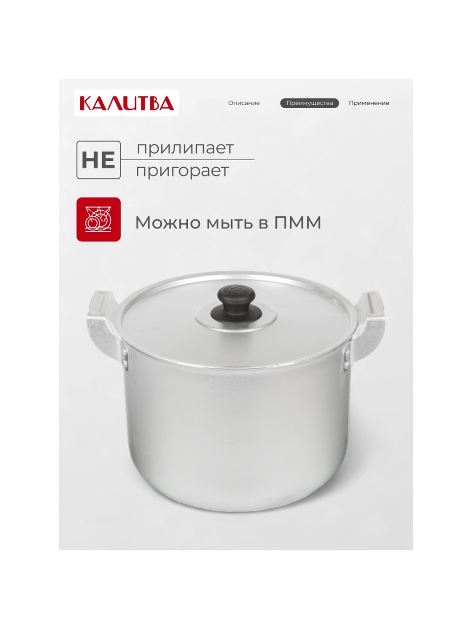 Кастрюля алюминиевая Калитва 8 л — оптимальный выбор для семьи: лёгкая, вместительная, подходит для супов, макарон и пельменей. Гарантия 2 года.