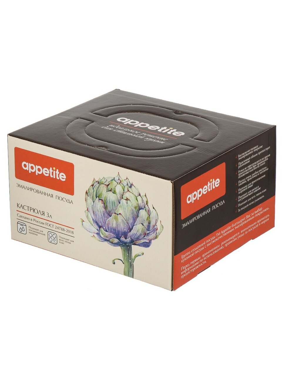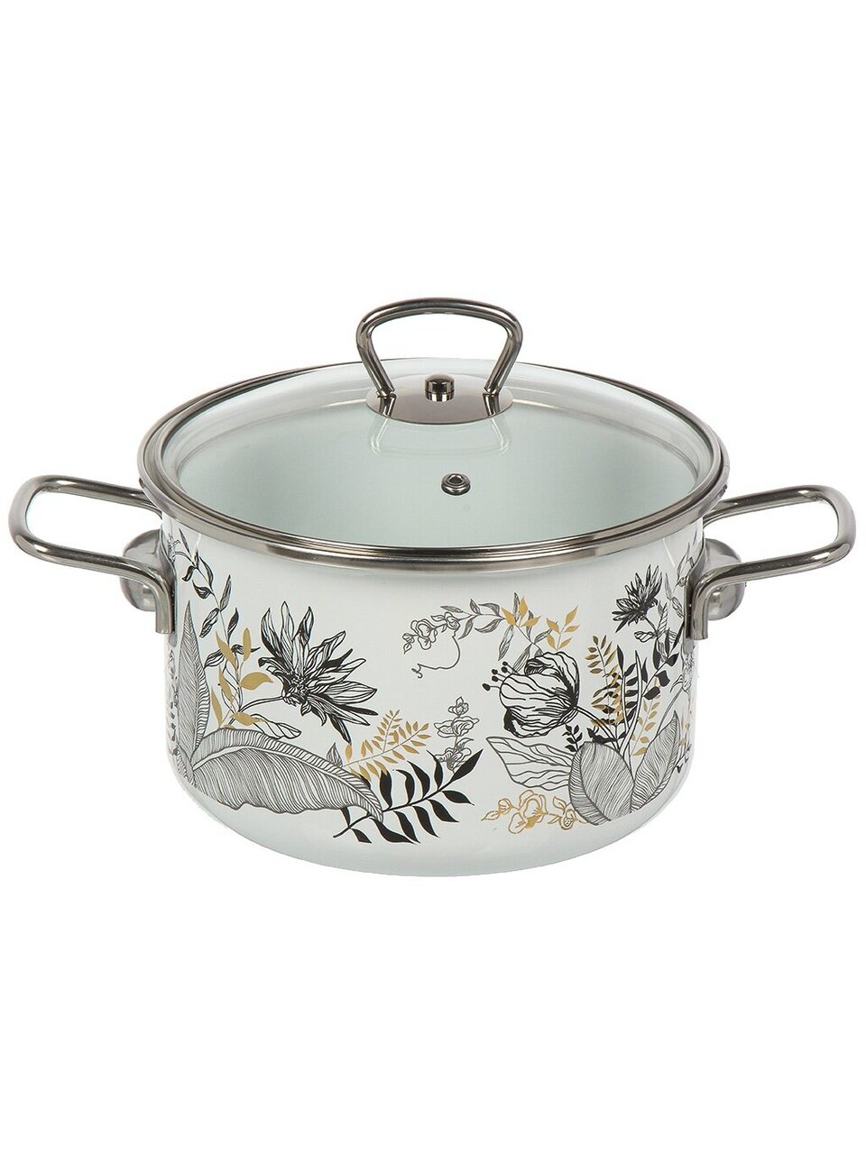 Эмалированная кастрюля Appetite Botany 3 л: универсальное решение для индукции и всех типов плит. Прочный корпус, стеклянная крышка, идеальна для дома и дачи.