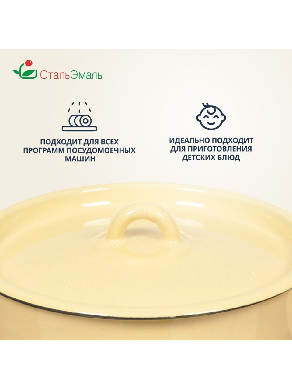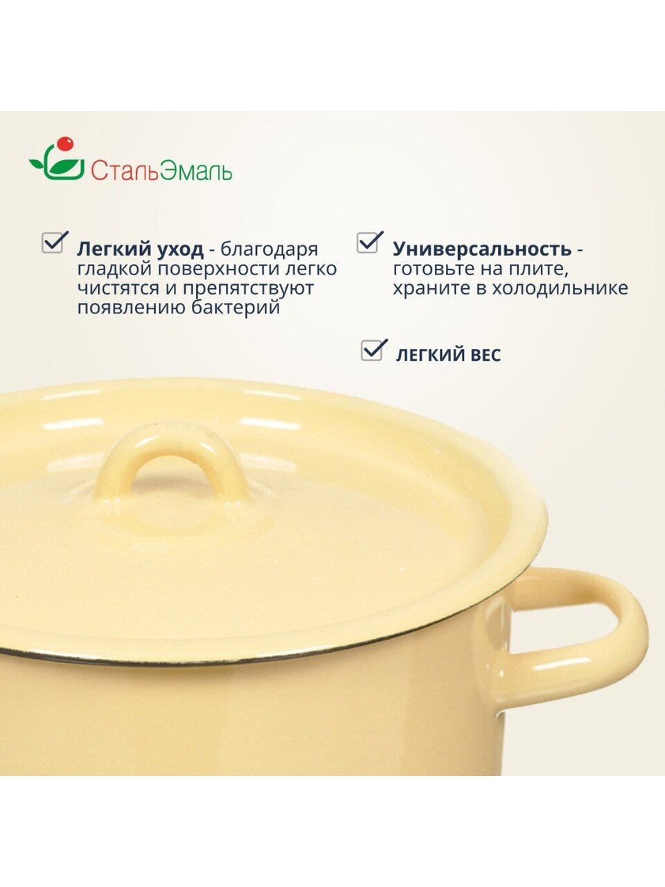 Эмалированная сталь устойчива к коррозии, не впитывает запахи, легко моется даже в посудомоечной машине. Кастрюля компактна, универсальна и подходит для любых блюд — отличный вариант для дачи и дома.
