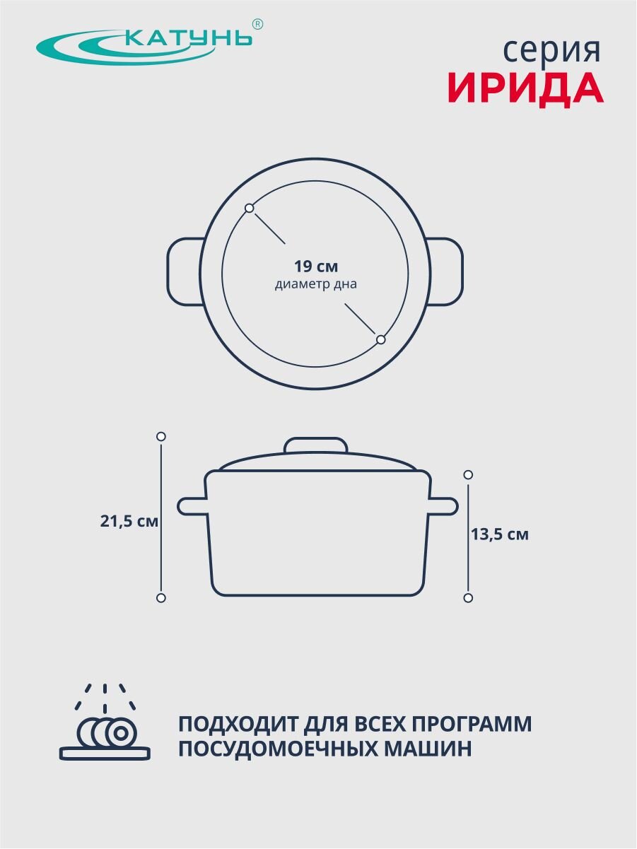 Кастрюля Катунь Ирида 5.2 л — это универсальный выбор для тех, кто ищет, какую кастрюлю купить для индукционной плиты или газовой, и хочет получить долговечность и удобство. Благодаря капсульному дну кастрюля быстро и равномерно нагревается, что важно для варки супа, борща, каши или пельменей. Стеклянная крышка с выпускным клапаном позволяет контролировать процесс приготовления и предотвращает выкипание.