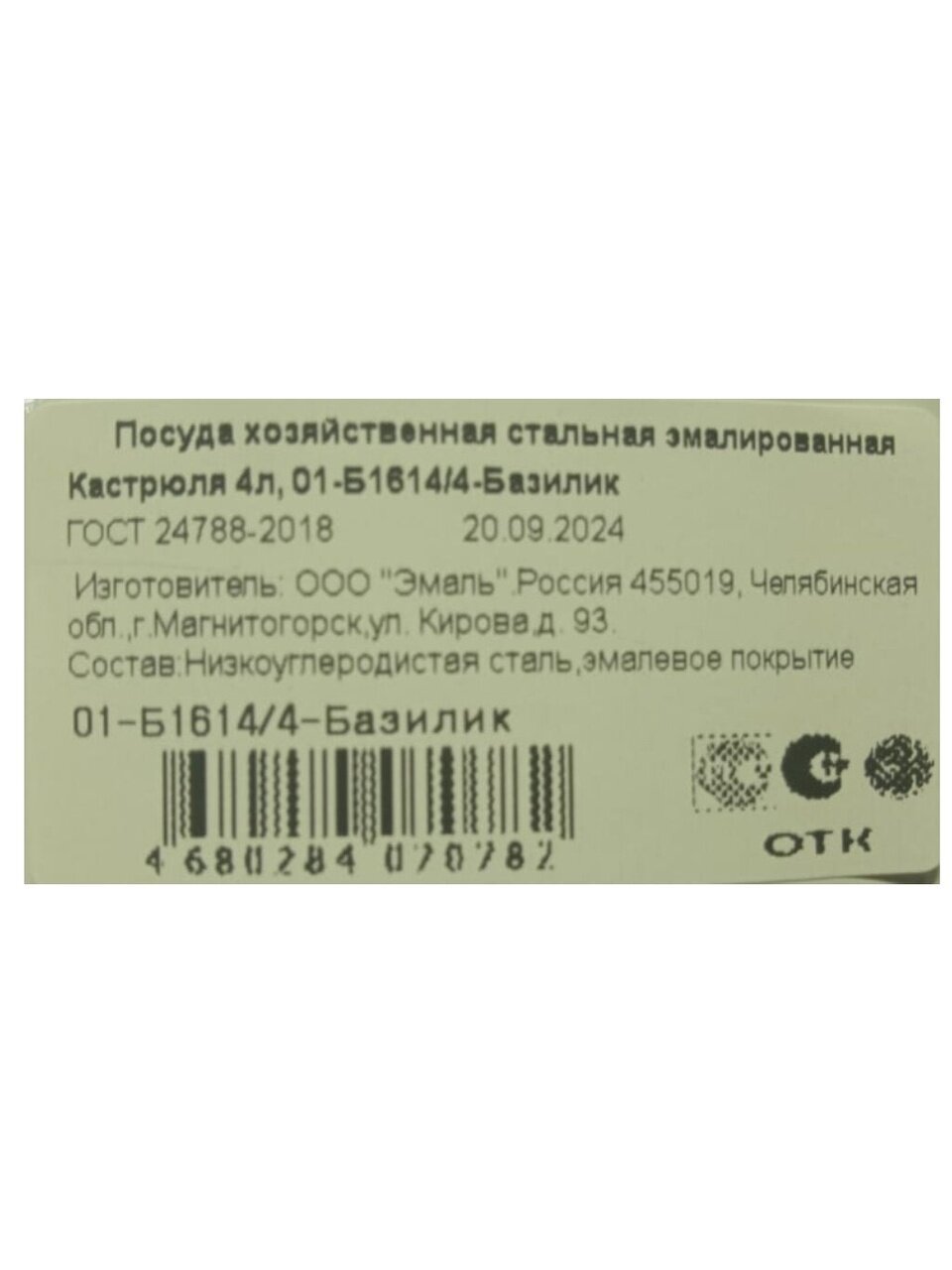 Вы можете приобрести «Кастрюля эмалированная сталь, 4 л, крышка сталь, цилиндр, Базилик, 01-Б1614/4М_а, индукция» и другие товары в нашем интернет-магазине в Серпухове по низким ценам и с бесплатным самовывозом.