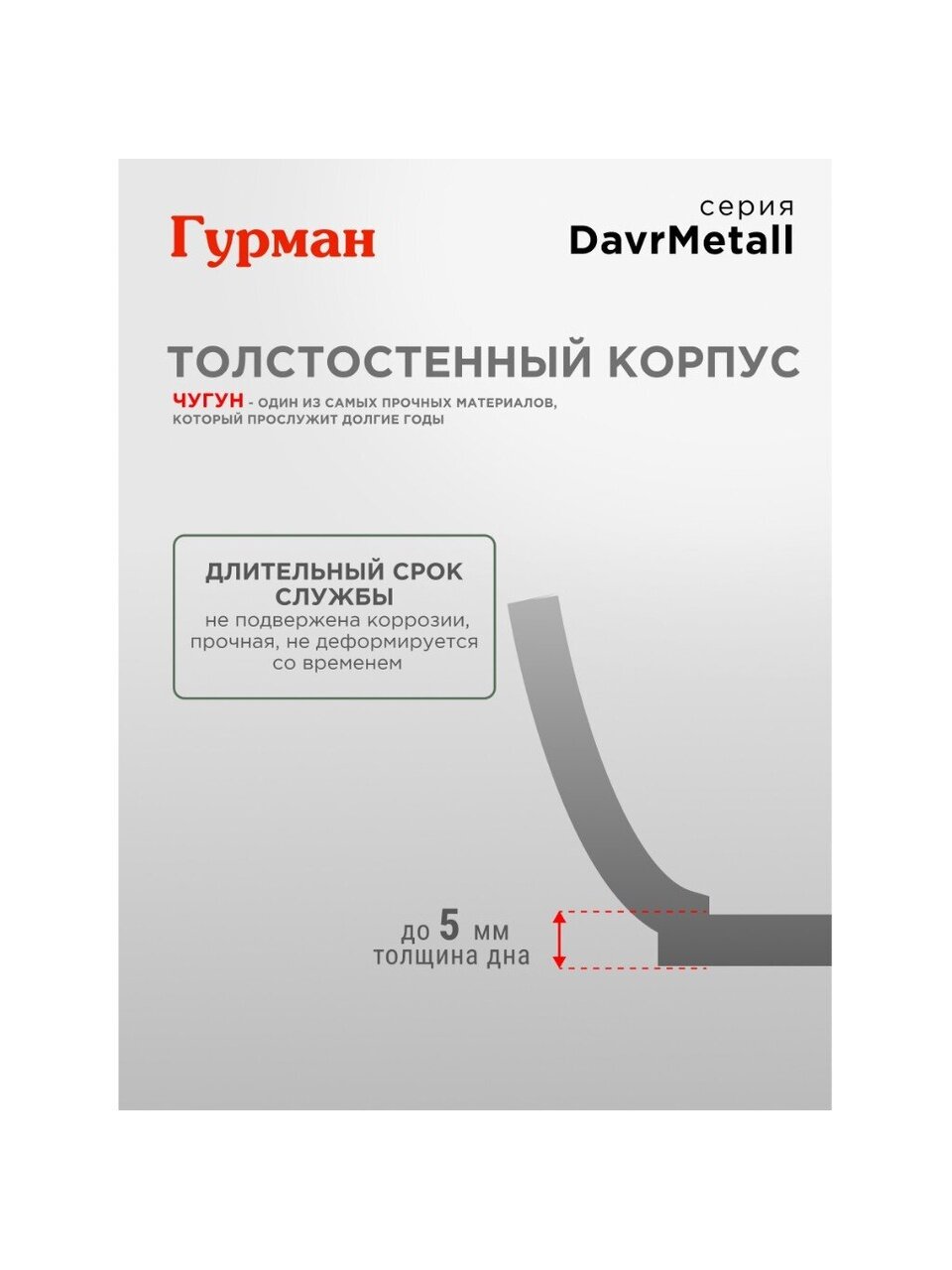 - качественный чугун: обеспечивает равномерное распределение тепла и сохранение всех вкусовых качеств продуктов;