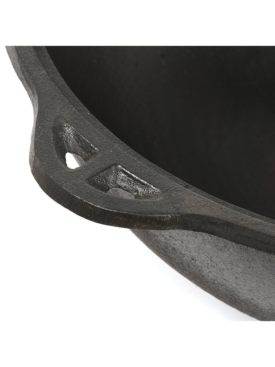 Дизайн казана продуман до мелочей: плоское дно позволяет использовать его на различных типах плит, будь то газовые или электрические, а также на открытом огне. Две удобные ручки обеспечивают легкость в обращении и безопасность при переноске.