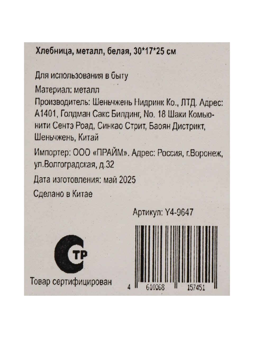 Вы можете приобрести «Хлебница металл, 30х25х17 см, белая, Y4-9647» и другие товары в нашем интернет-магазине в Ельце по низким ценам и с бесплатным самовывозом.