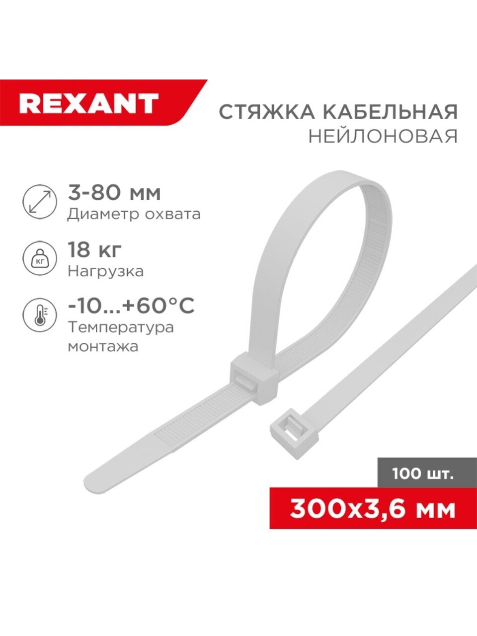 Вы можете приобрести «Хомут стяжной кабельный, 3.6х300 мм, нейлон, 100 шт, белый, Rexant, 07-0300» и другие товары в нашем интернет-магазине в Брянске по низким ценам и с бесплатным самовывозом.