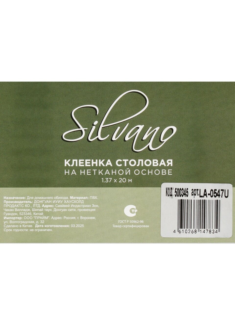 Клеенка Silvano 1.37х20 м ПВХ: долговечная защита для стола и мебели дома или на даче — оптимальный размер, современный дизайн, выгодная цена.