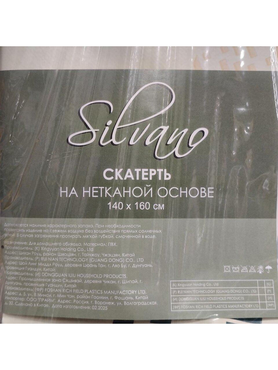 Скатерть Silvano станет стильным и практичным дополнением для любого стола. Изготовленная из ПВХ на нетканой основе, она обеспечивает легкость в уходе и долговечность. Идеально подходит для использования как дома, так и на даче.