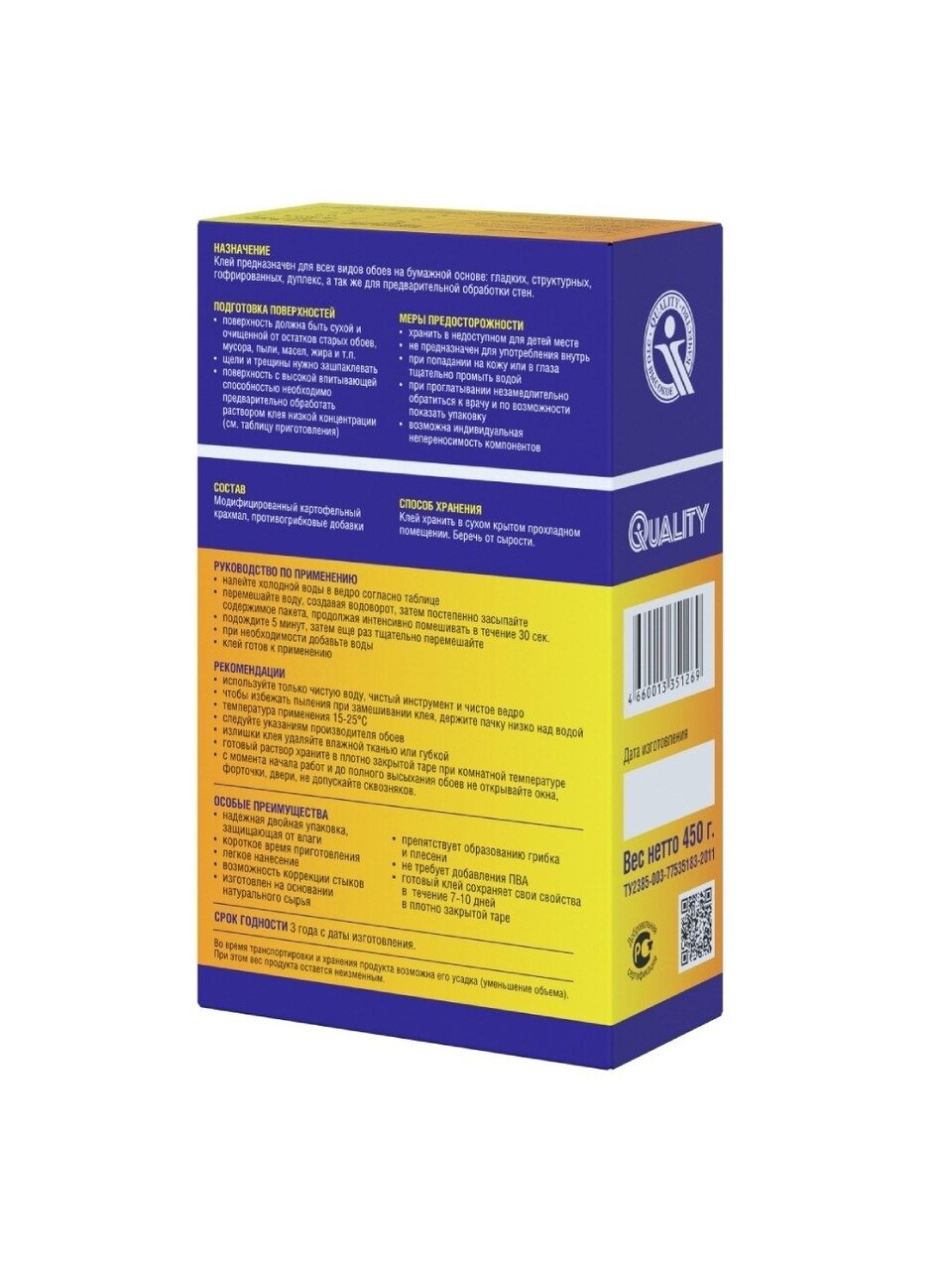 Вы можете приобрести «Клей для всех видов обоев, Quality, 450 г, 13-15 рулонов, картон, 7227» и другие товары в нашем интернет-магазине в Ельце по низким ценам и с бесплатным самовывозом.