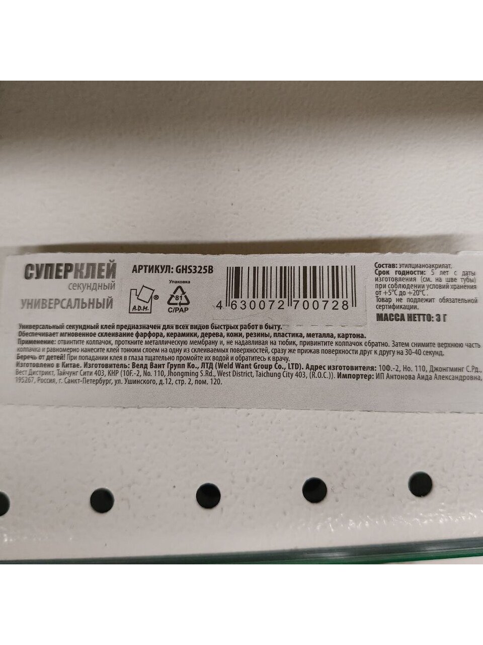 Вы можете приобрести «Клей A.D.M, универсальный, однокомпонентный, 3 г, GHS325B, Супер» и другие товары в нашем интернет-магазине в Клинцах по низким ценам и с бесплатным самовывозом.