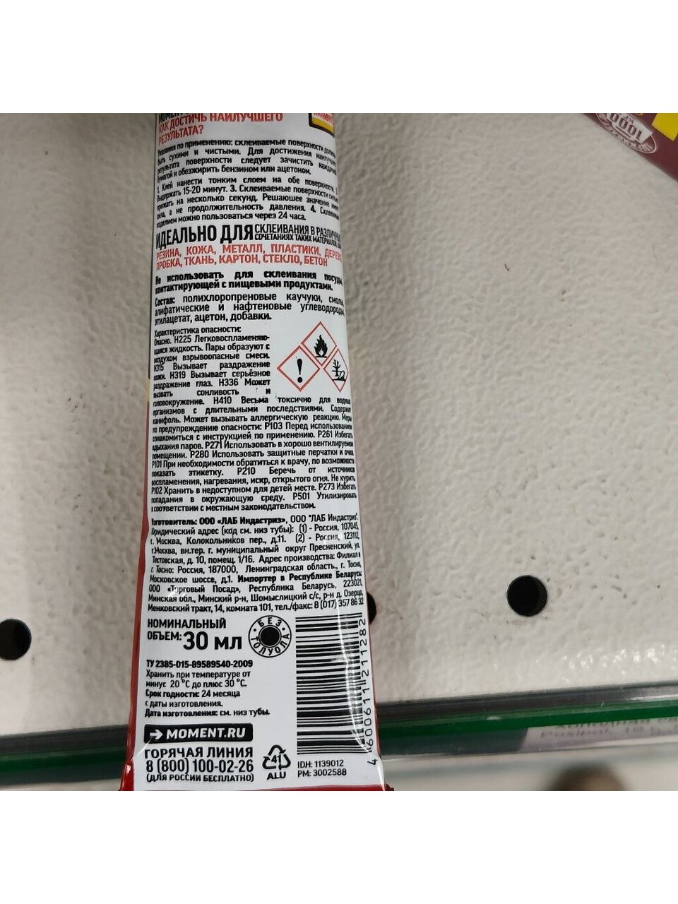 Вы можете приобрести «Клей Момент, водостойкий, однокомпонентный, 30 мл, 1139012, 88» и другие товары в нашем интернет-магазине в Смоленске по низким ценам и с бесплатным самовывозом.