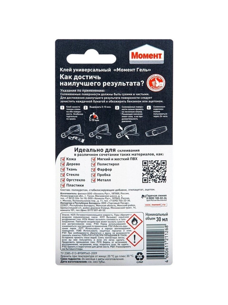 Вы можете приобрести «Клей Момент, универсальный, прозрачный, водостойкий, однокомпонентный, 30 мл, 997778, Гель» и другие товары в нашем интернет-магазине в Брянске по низким ценам и с бесплатным самовывозом.