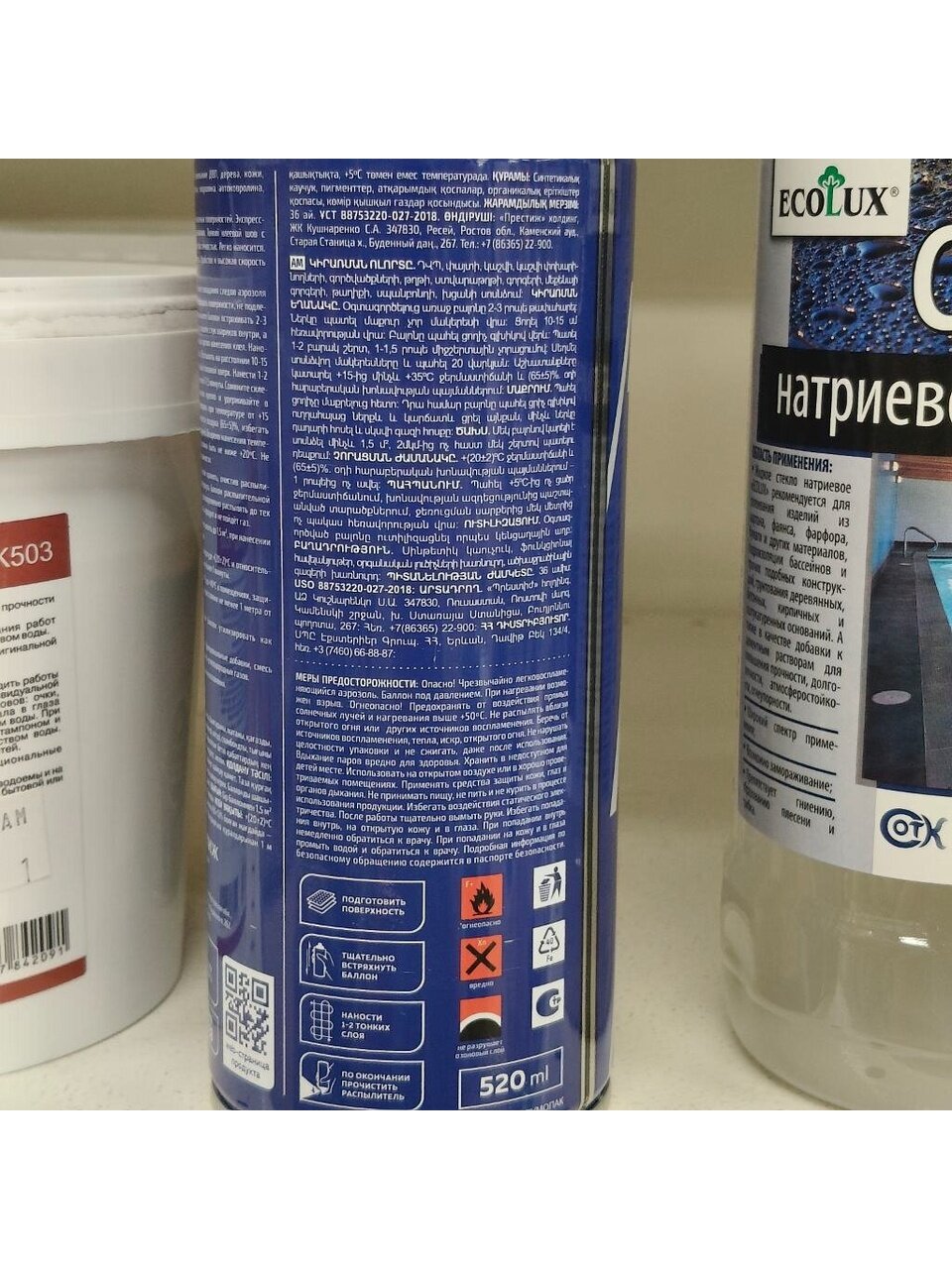Меры предосторожности: Осторожно! Сосуд находится под давлением: не разбирать и не сжигать после использования, не нарушать целостности. Огнеопасно! Вдыхание паров вредно для здоровья. Предохранять от воздействия прямых солнечных лучей и нагревания выше +50 ºС и относительной влажности воздуха (65±5) %,С. Не распылять вблизи открытого огня и раскалённых предметов. Беречь от источников воспламенения, тепла, искр, открытого огня. Хранить в недоступном для детей месте. Использовать на открытом воздухе или в хорошо проветриваемых помещениях. Применять средства защиты кожи, глаз и органов дыхания. Не принимать пищу, не пить и не курить в процессе использования продукции. Избегать воздействия статического электричества. После работы тщательно вымыть руки. Избегать попадания внутрь, на открытую кожу и в глаза. При попадании внутрь немедленно обратиться к врачу. При попадании на кожу и в глаза промыть водой и обратиться к врачу.