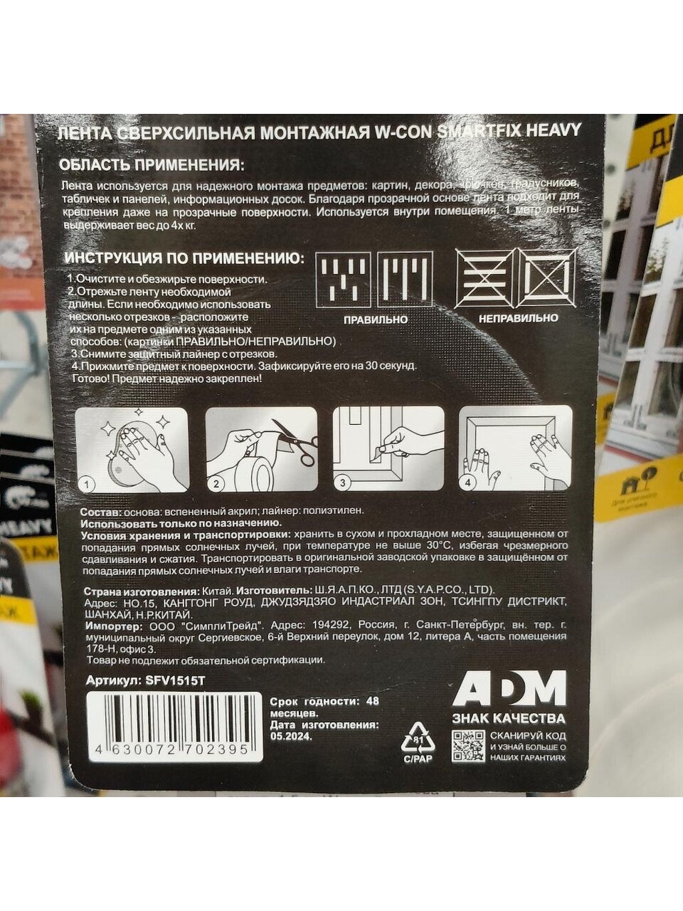 Вы можете приобрести «Лента 15 мм, прозрачная, основа акриловая, 1.5 м, W-con, SmartFix Heavy, для внутреннего монтажа, SFV1515T» и другие товары в нашем интернет-магазине в Санкт-Петербургe по низким ценам и с бесплатным самовывозом.