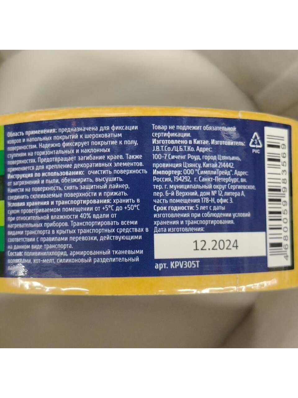 Лента имеет высокую клейкость и хорошо удерживает полотна линолеума и ковролина, предотвращая их смещение и загибание.