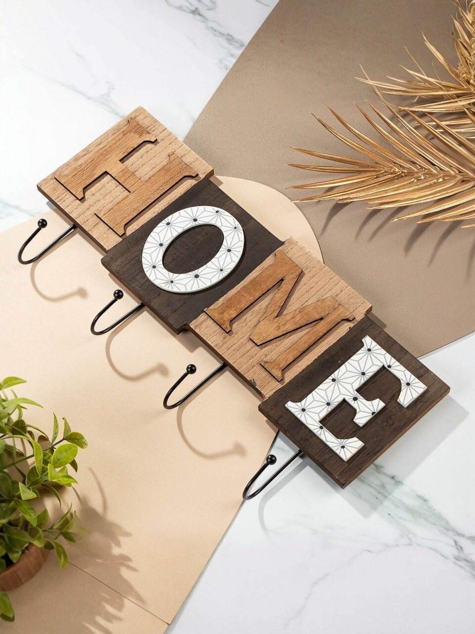Создайте уют и порядок в интерьере с декоративным панно "Home" с крючками. Этот стильный аксессуар не только украшает пространство, но и добавляет функциональности. Прекрасное решение для прихожей или ванной комнаты.