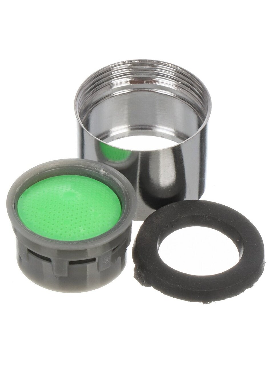 Аэратор закрепляется на носике крана и служит для ограничения потока воды без снижения интенсивности струи. Вода, проходя через несколько сеток устройства, смешивается с воздухом - на выходе получается визуально мягкая струя. Благодаря тому, что подмешивание воздуха в аэраторе происходит постоянно, давление в смесителе кажется неизменным, несмотря на то, что расход воды уменьшается.