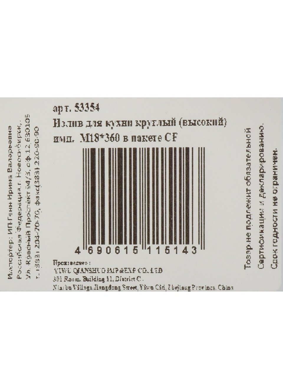 Вы можете приобрести «Излив смесителя для кухни, нержавеющая сталь, ИМП, 25 см, индивидуальная упаковка, ComfortFactor, 5636-10» и другие товары в нашем интернет-магазине в Липецке по низким ценам и с бесплатным самовывозом.