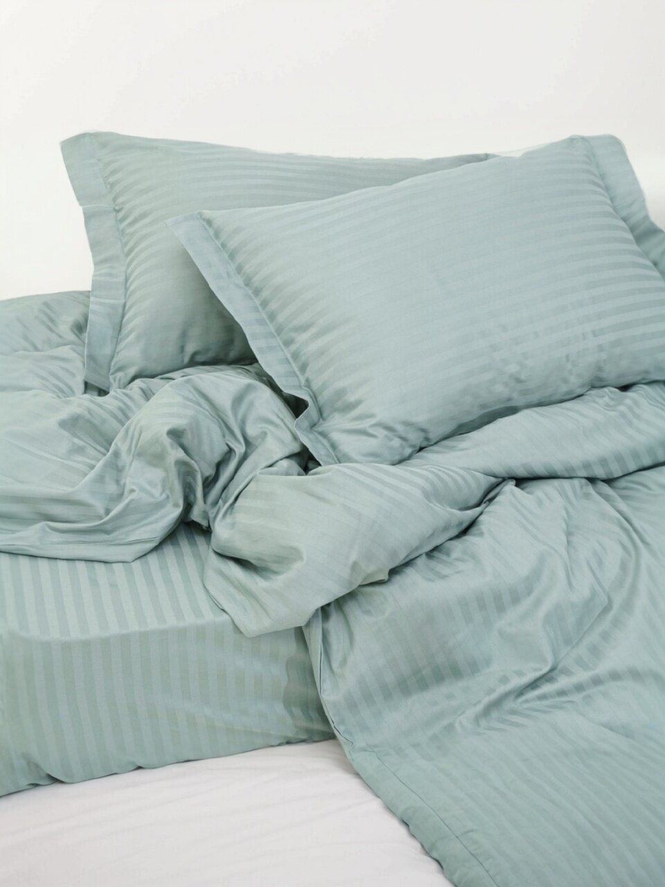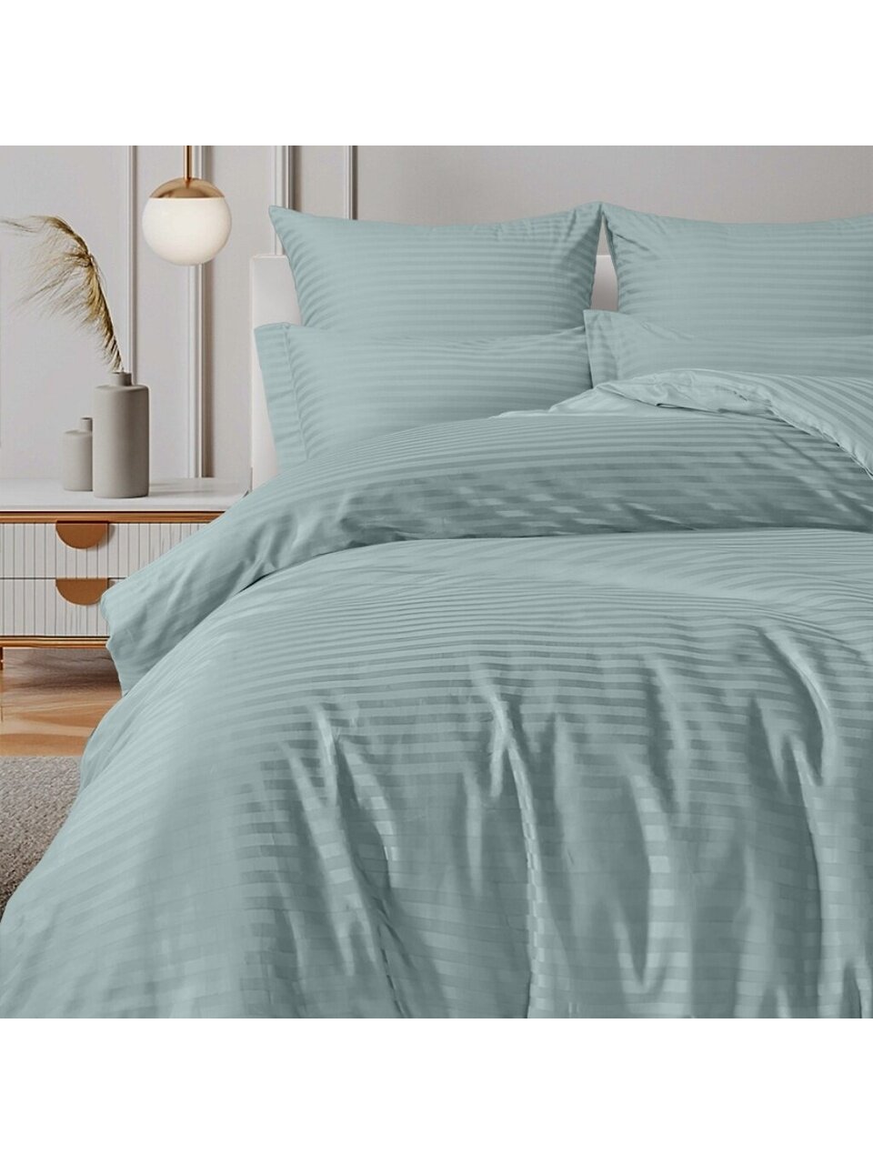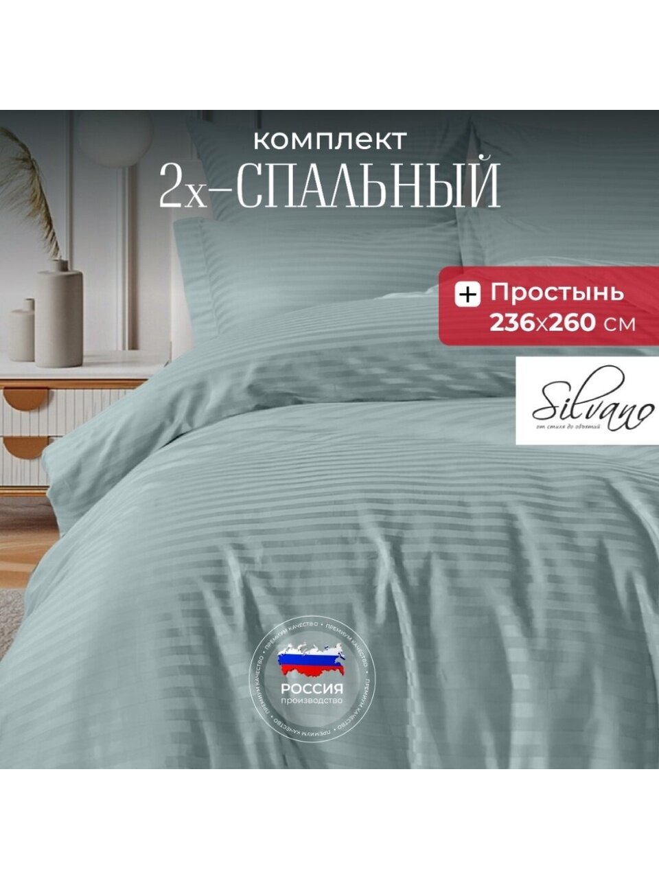 Постельное белье 2-спальное Silvano страйп-сатин Жадеит: премиальный хлопок, идеальный размер для комфорта, подарочная упаковка — решение для вашего уюта.