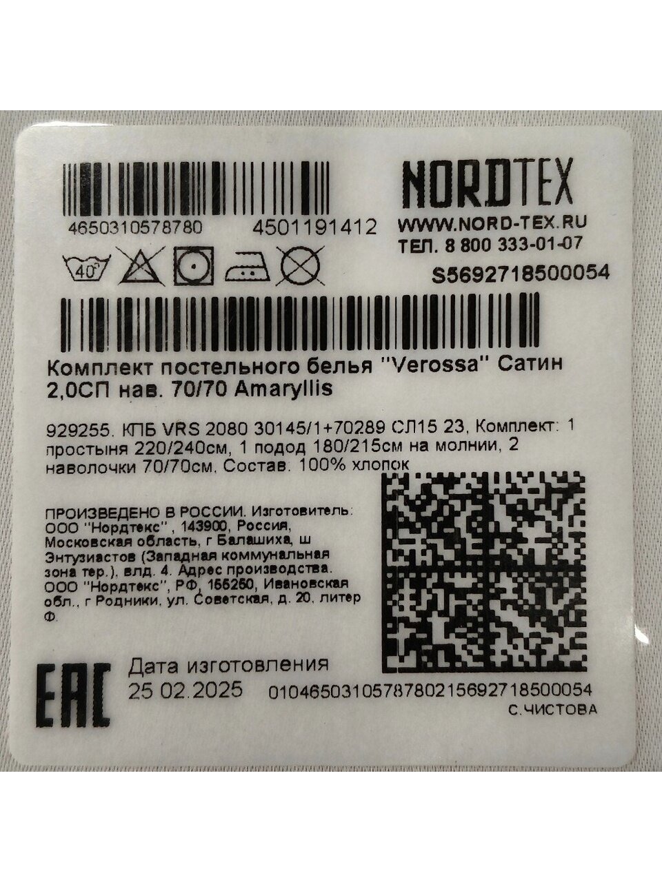 Постельное белье Verossa Amaryllis 2-спальное: сатин 100% хлопок, простыня 220х240, 2 наволочки 70х70, пододеяльник 180х215, подарочная упаковка — комфорт и стиль вашей спальни.