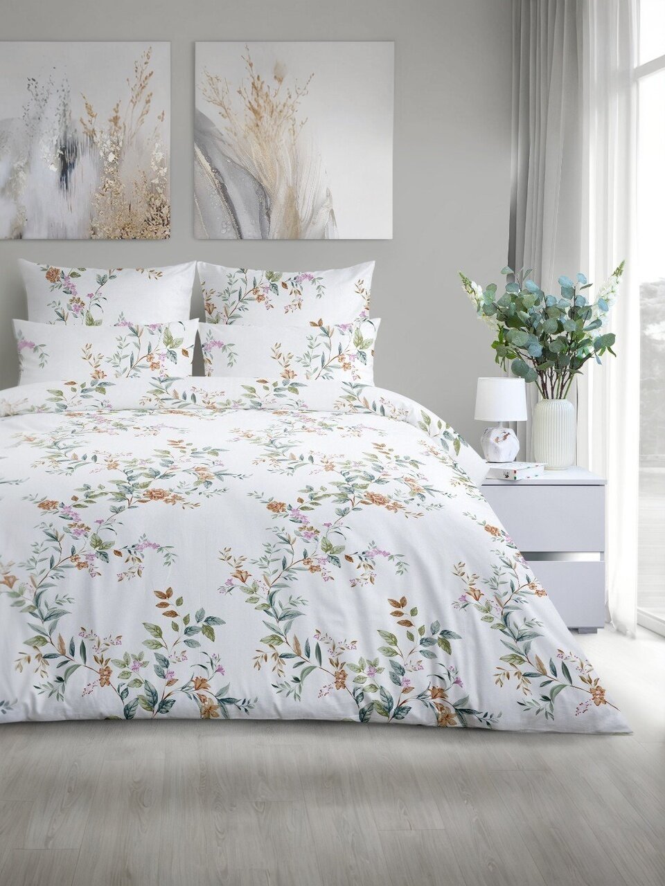 - Сатиновый комплект Verossa Amaryllis — оптимальный выбор для ценителей натуральных тканей с премиальным дизайном: цветы и листья на белом фоне подчеркивают свежесть интерьера.
