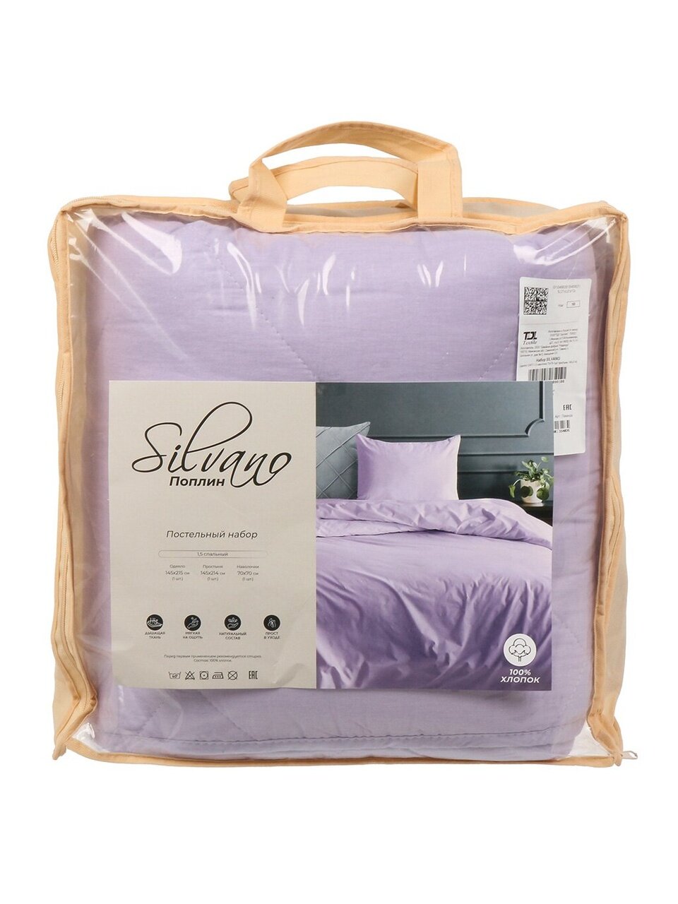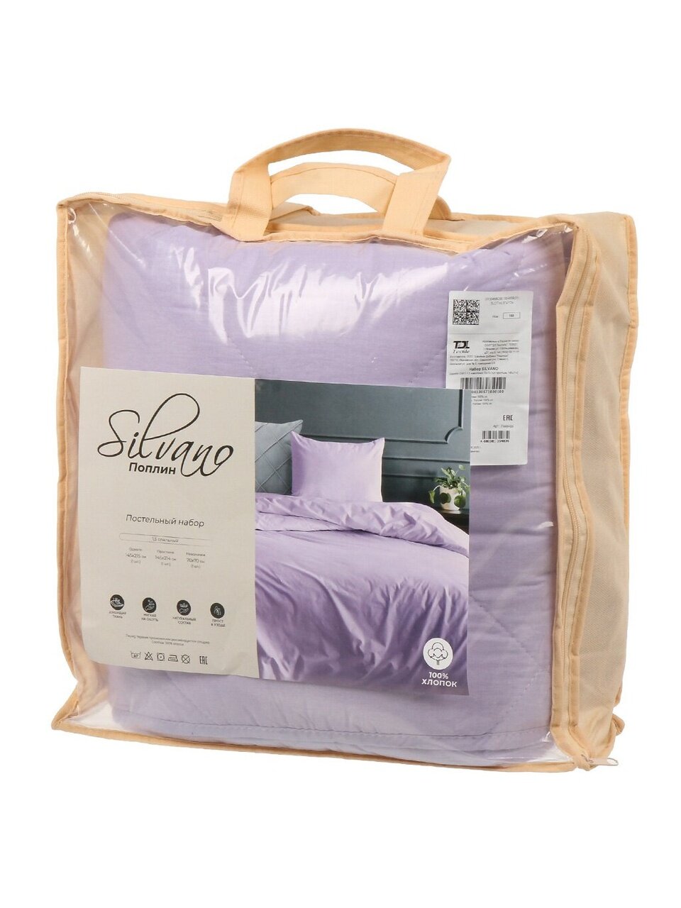 Набор 1.5-спальный Silvano Лаванда: 100% хлопок, простыня 145х214 см, 2 наволочки 70х70 см, одеяло 145х215 см — идеальный выбор для уюта и подарка.