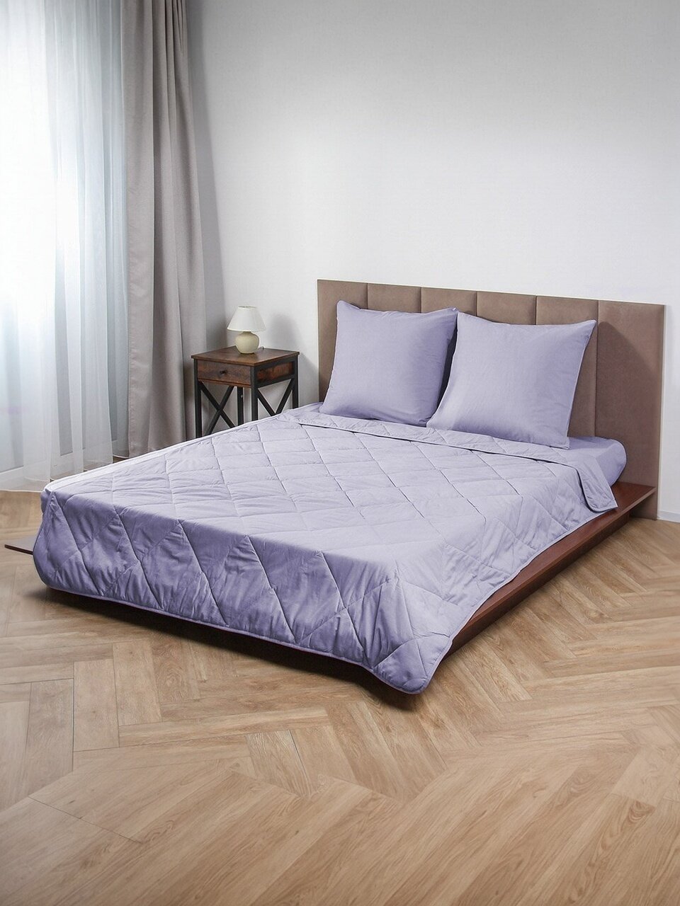 В отличие от аналогов без одеяла, этот комплект решает вопрос сезонной смены постельных принадлежностей: не нужно искать и докупать одеяло отдельно. Однотонный сиреневый дизайн впишется в любой интерьер, а подарочная упаковка делает набор отличным вариантом для подарка на новоселье или праздник. Если вы выбираете, чем отличается поплин от других тканей — поплин плотнее и износоустойчивее бязи, приятнее на ощупь и легче в уходе.