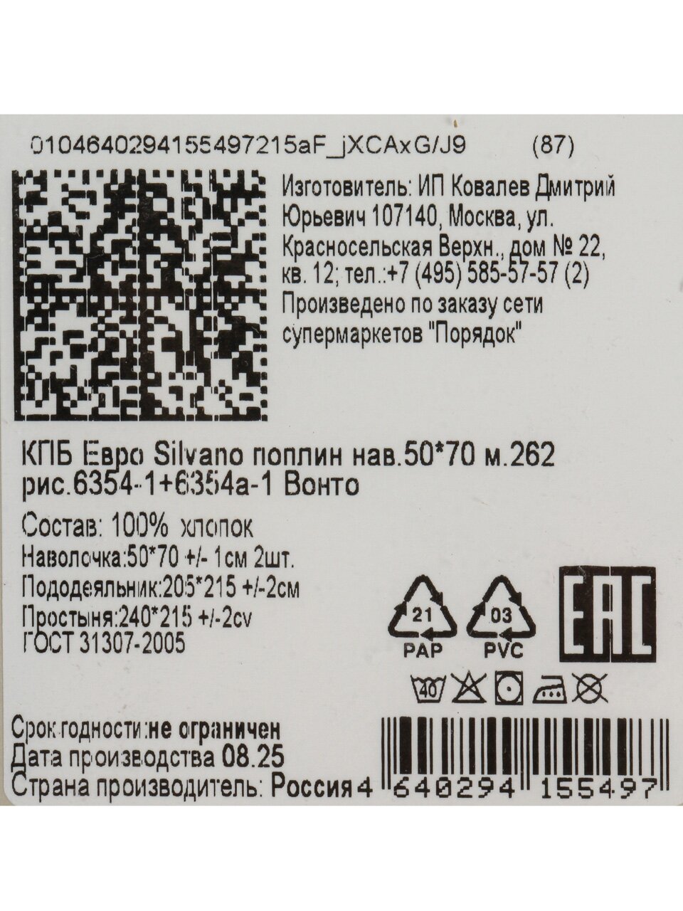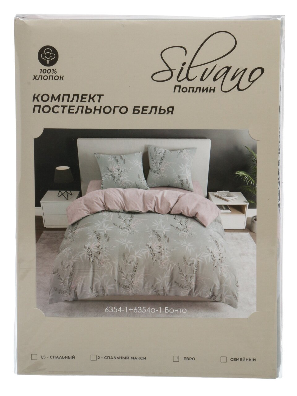 Постельное белье евро Silvano Вонто из поплина: 100% хлопок, размеры 215х240, 205х215, 2 наволочки — комфорт и стиль для спокойного сна.