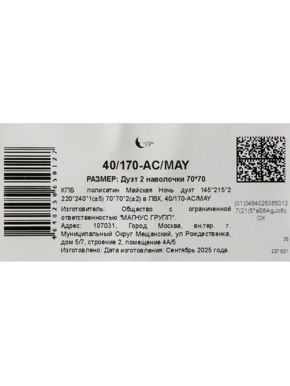 Семейное постельное белье «Майская ночь» — это идеальное решение для тех, кто ищет, какое постельное белье выбрать для двуспальной кровати или хочет купить недорого семейный комплект для дачи. Материал полисатин (смесь хлопка, вискозы и полиэстера) сочетает мягкость, прочность и простоту ухода. Ткань не скатывается, сохраняет цвет после стирки при 40 градусах, не требует глажки и быстро сохнет. Это особенно важно для семей с детьми и аллергиков.